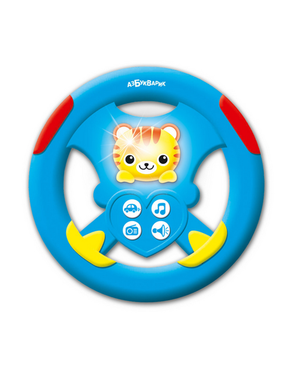 Благодаря этой игрушке, кроха почувствует себя настоящим водителем! Музыкальный руль с тигрёнком порадует малыша настоящими звуками зажигания, сигнализации и разными сигналами машин. А ещё на руле есть кнопочка "авторадио" с задорной танцевальной мелодией и кнопка "нотка", нажимая на которую кроха будет слушать и подпевать любимые детские песенки: "Би-би-би", "Чунга-чанга", "Если нравится тебе, то делай так".