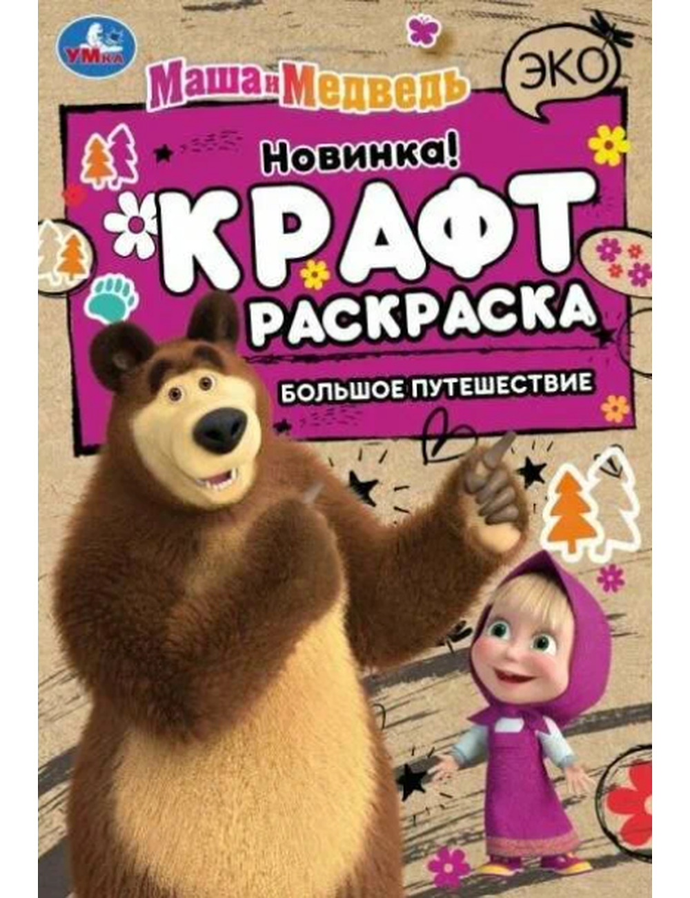 Эко крафт-раскраска "Маша и Медведь. Большое путешествие" ТМ "УМка" приглашает детей порисовать: