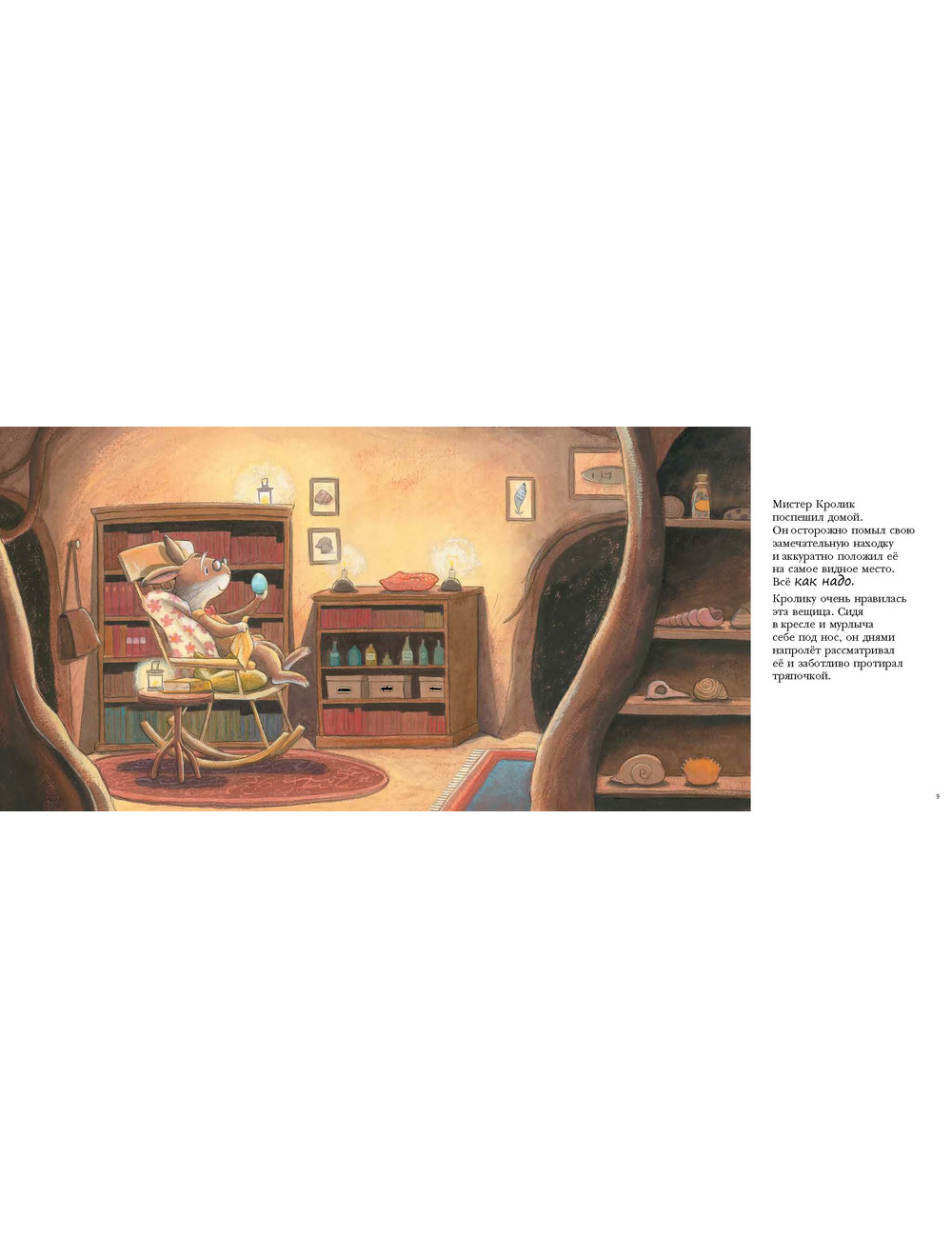 У Мистера Кролика было две страсти: он обожал наводить порядок в своей чистенькой аккуратной норке и коллекционировать разные красивые вещи. Однажды он нашёл в лесу и принёс к себе в дом удивительный предмет – гладкий, круглый, такой приятный на ощупь! Кролик не мог налюбоваться на свою находку, но в один прекрасный день вещица неожиданно раскололась пополам, и из неё вылезло безобразное липкое существо – новорожденный утёнок, который перевернул доселе упорядоченную жизнь Мистера Кролика с ног на голову.