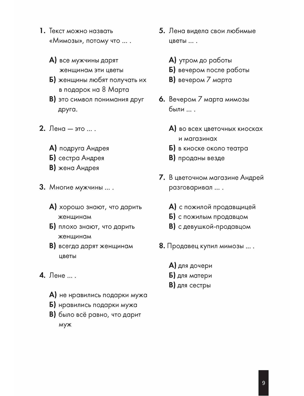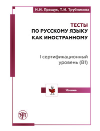 Тренировочные тесты по русскому языку как иностранному адресованы всем, кто изучает русский язык, прошёл программу первого сертификационного уровня (B1) и хочет подготовиться к сдаче субтеста по чтению. Данное пособие можно использовать как при работе в аудитории с преподавателем, так и при самостоятельной подготовке к сдаче экзамена, в процессе обучения, и в качестве материалов текущего и итогового контроля. Предъявляемые в пособии материалы проходили апробацию в течение 3 лет в группах студентов-иностранцев, готовящихся к сдаче теста B1.