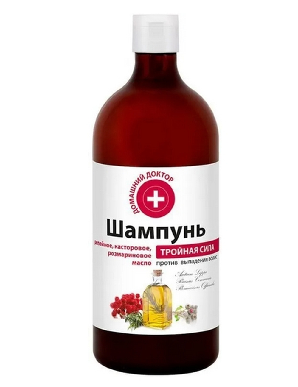 Шампунь "Тройная сила" Репейное, касторовое, розмариновое масло Домашний доктор, 1000 мл