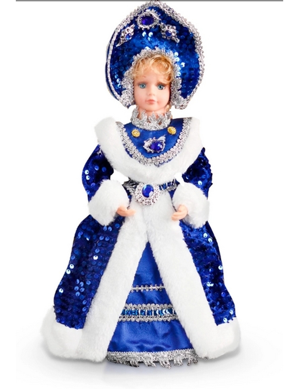 Фигура - Снегурочка в синей шубке с отделением для подарков 35 см