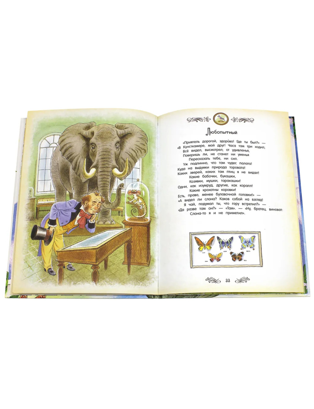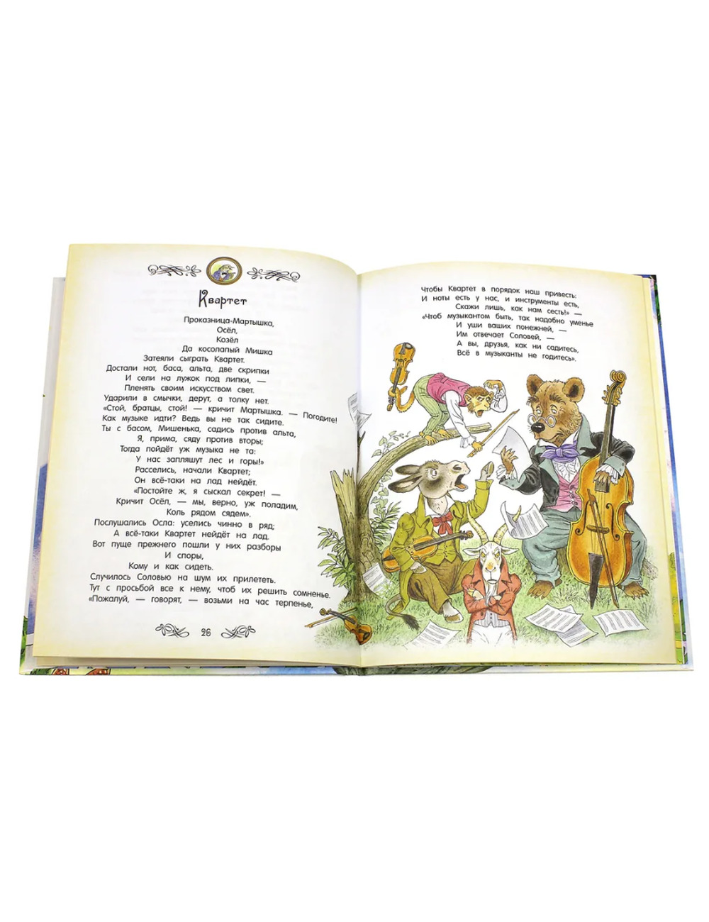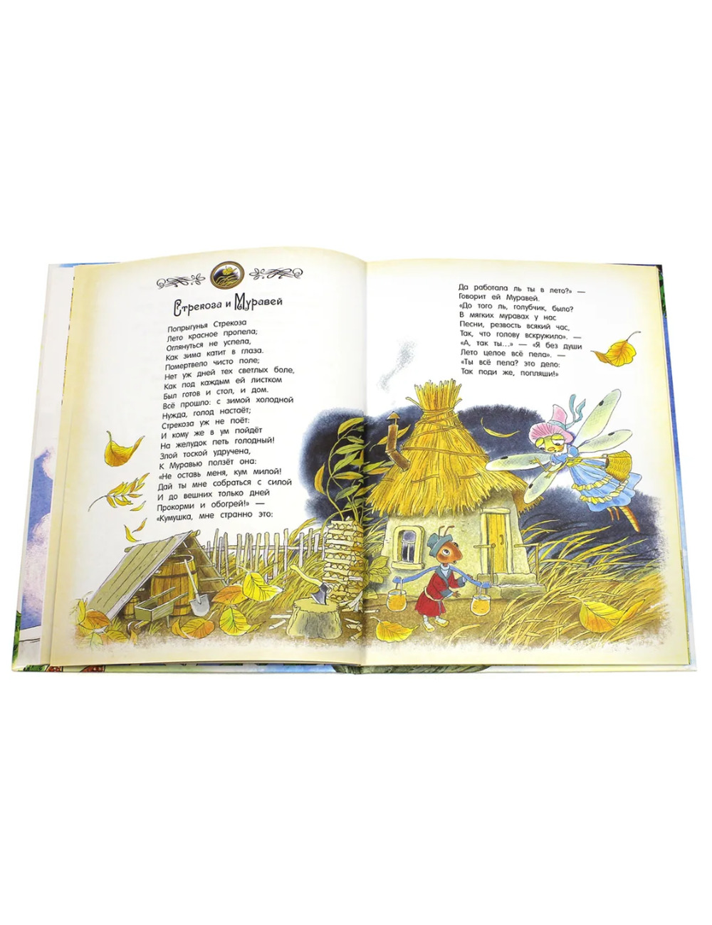 Знакомые герои басен предстают в этой книге в виде помещиков и светских щеголей, дворовых и крестьян - обитателей живописных усадеб, деревень и городов XIX века: Лисица и Мартышка в чепцах и платьях с лентами, трудолюбивый Муравей в кафтанчике и Волк во фраке и цилиндре. Такими их придумал и нарисовал прекрасный художник Сергей Бордюг.