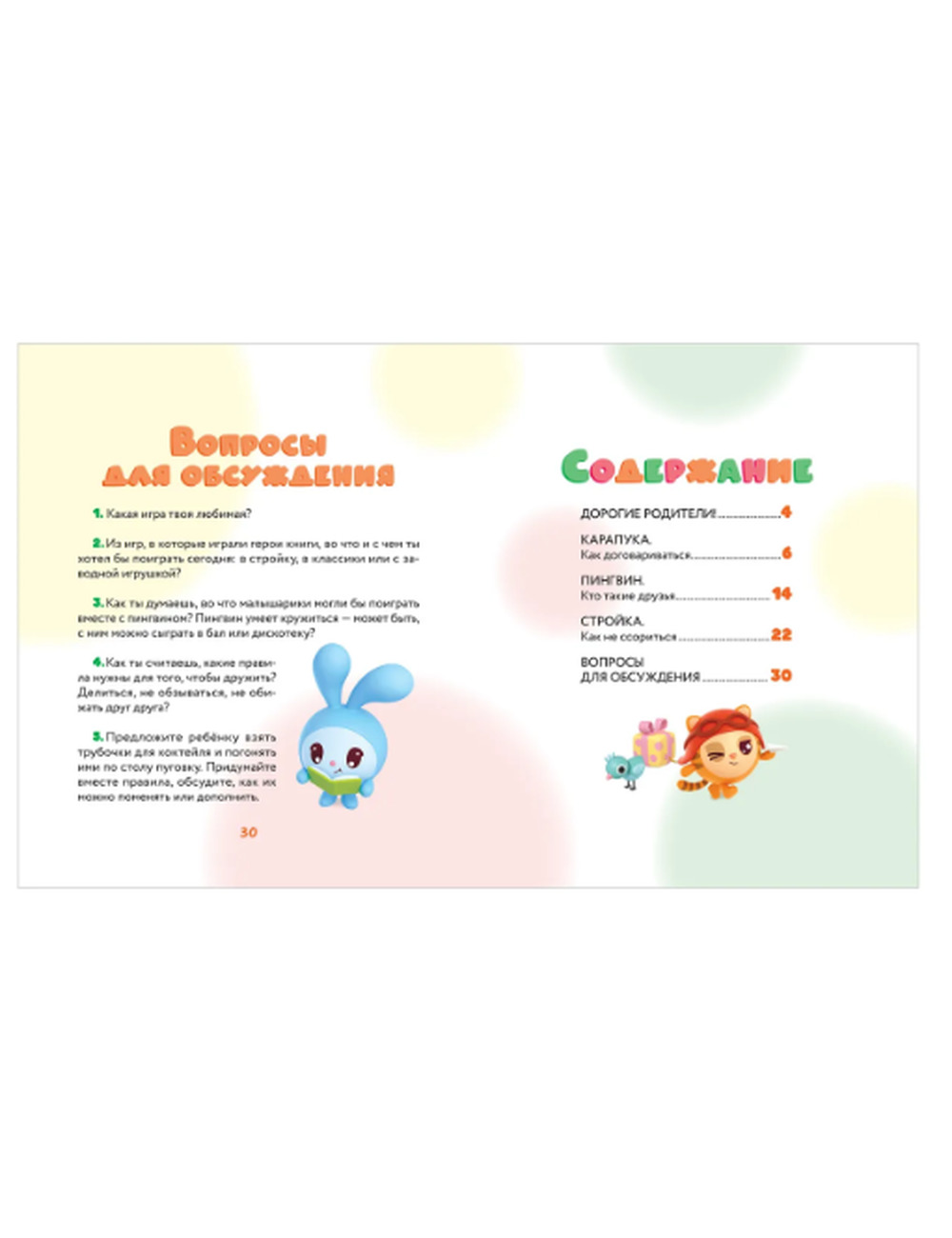 В новой серии «Малышарики» поднимаются важные темы по развитию эмоционального интеллекта и социальных навыков, а в конце каждой книжки родители найдут вопросы для обсуждения прочитанного с ребенком.