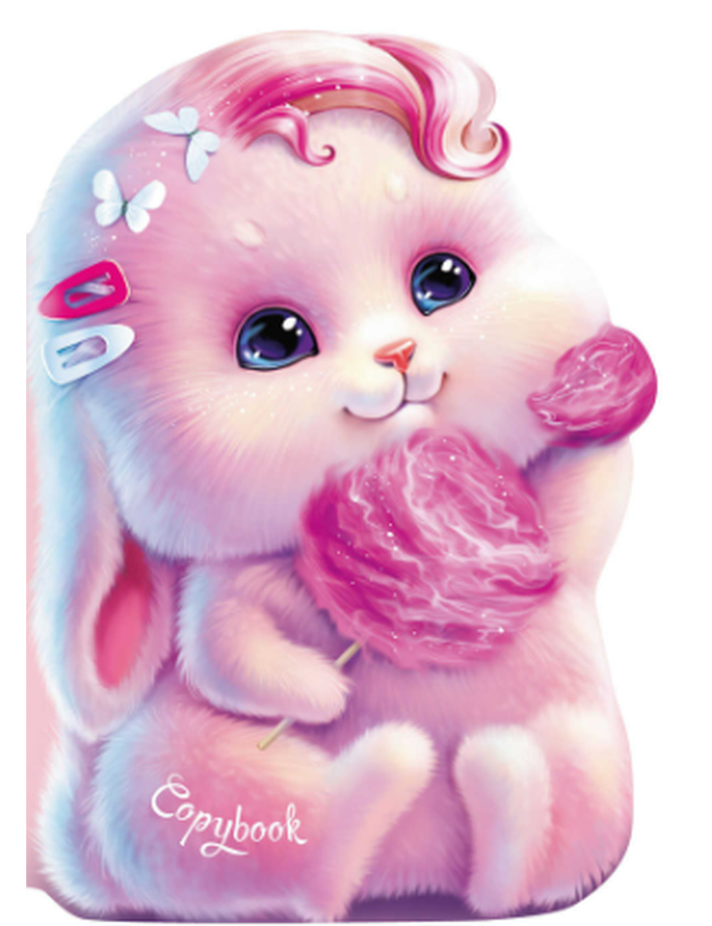 Тетрадь. ЗАЙКА И СЛАДКАЯ ВАТА. Размер: 180х255 мм. Количество листов - 40 л. Тип обложки - мягкий переплёт (2 скобы). Материал обложки - мелованный картон 190 г/м?. Печать обложки: полноцветная печать. Ламинация обложки - матовая ламинация. Особенности: фигурная вырубка. Цвет внутреннего блока - белый офсет. Плотность бумаги 65 г/м?. Красочность блока: печать в одну краску. Дизайн блока: точка.