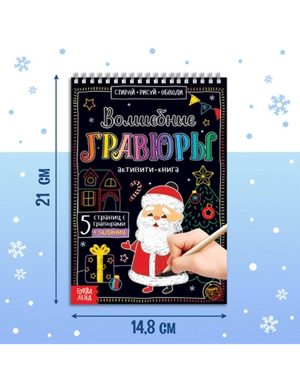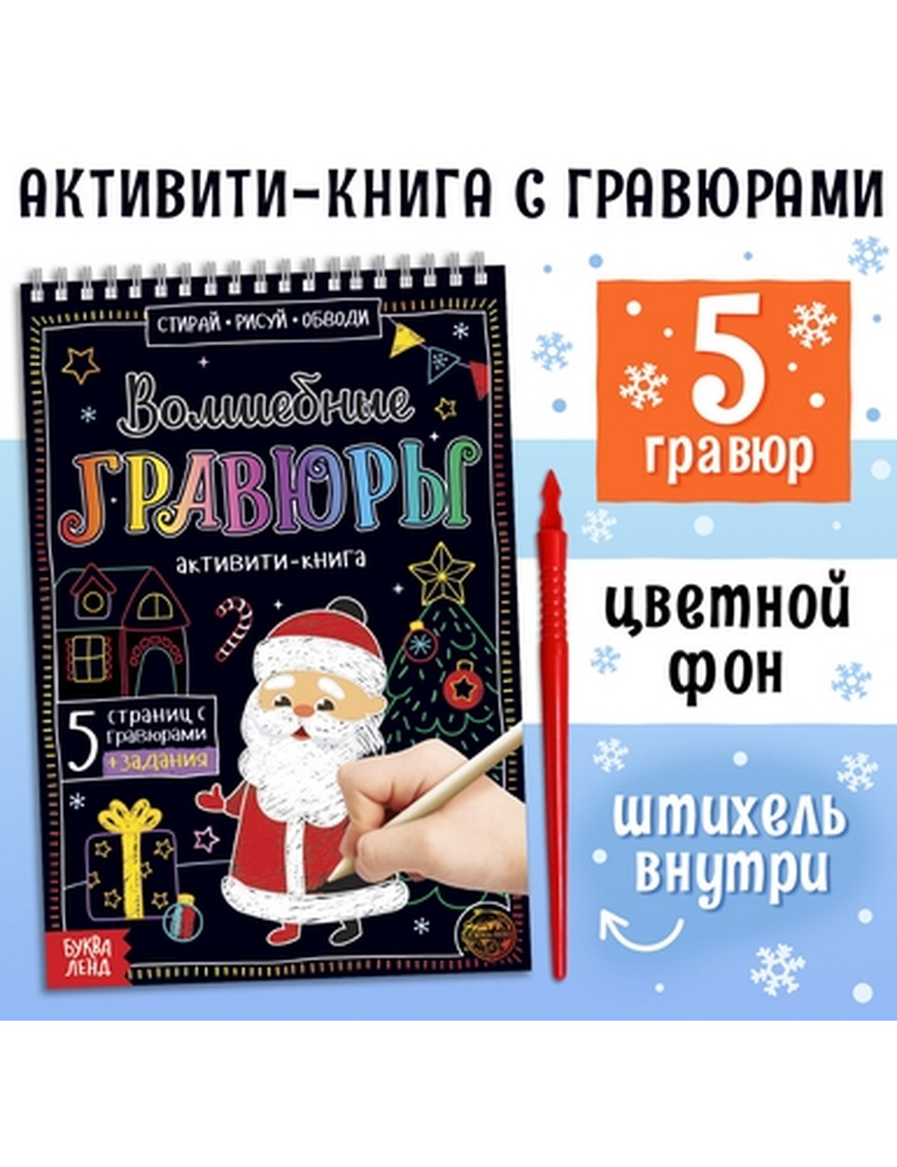 Активити-книжка «Волшебные гравюры» — это 12 страниц с весёлыми заданиями на внимательность, логику, мышление и усидчивость.