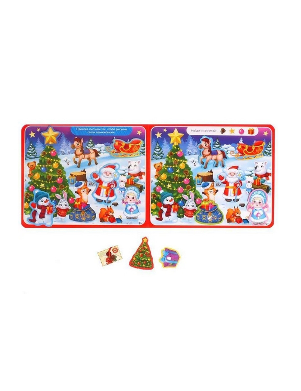 Обучающая книга с липучками направлена на расширение кругозора малыша. Внутри ребёнок найдёт интересные задания и загадки, а также сможет оживить новогоднюю историю с милыми зверятами.