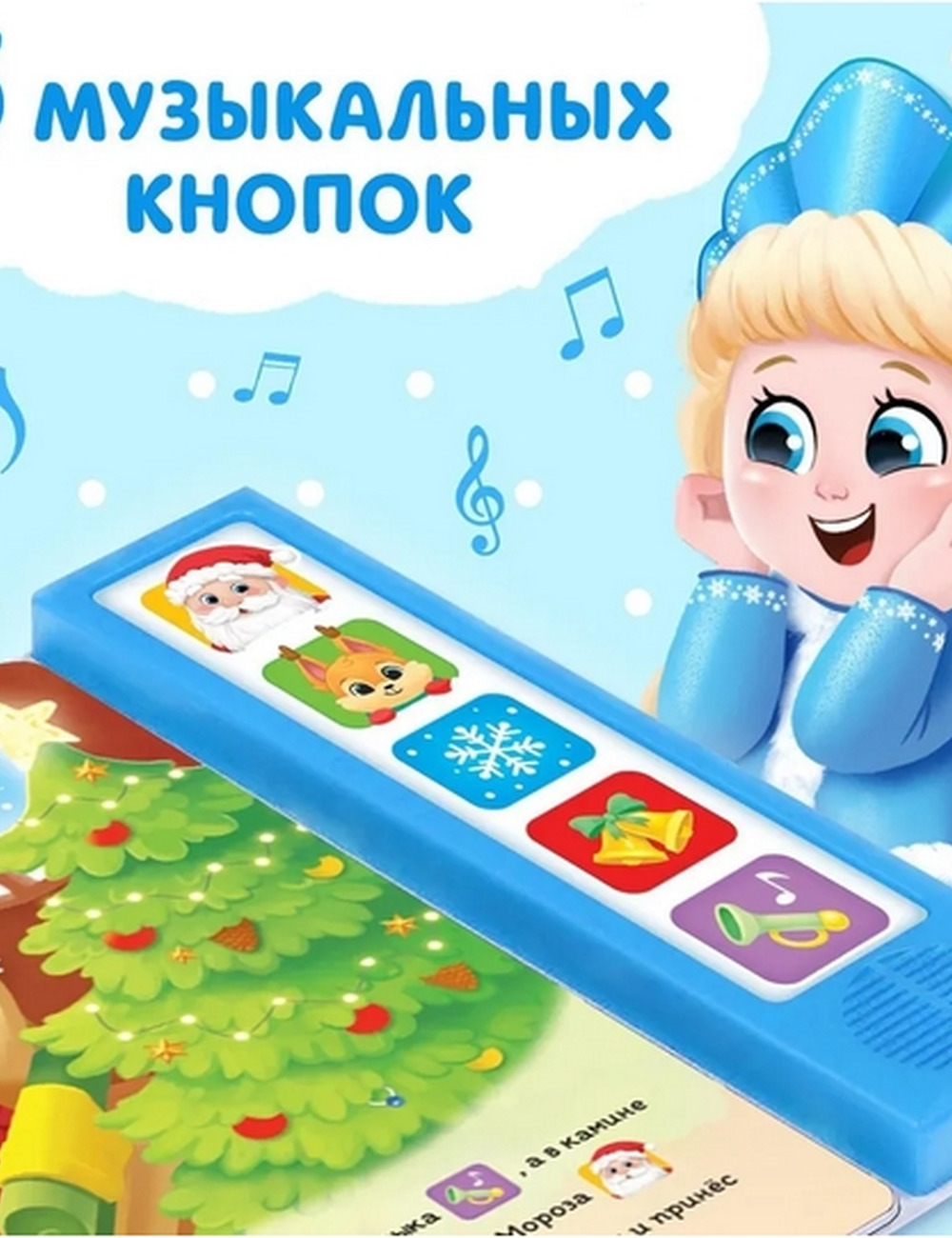 Особенностью этой книжки является наличие музыкального чипа, который воспроизводит звуки, связанные с Новым годом. Это делает процесс чтения более интересным и увлекательным для ребенка, а также способствует развитию его слухового восприятия.
