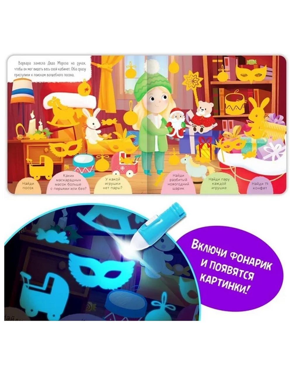 Чтобы расколдовать новогоднего волшебника, ребёнку предстоит выполнять задания со страниц книги.