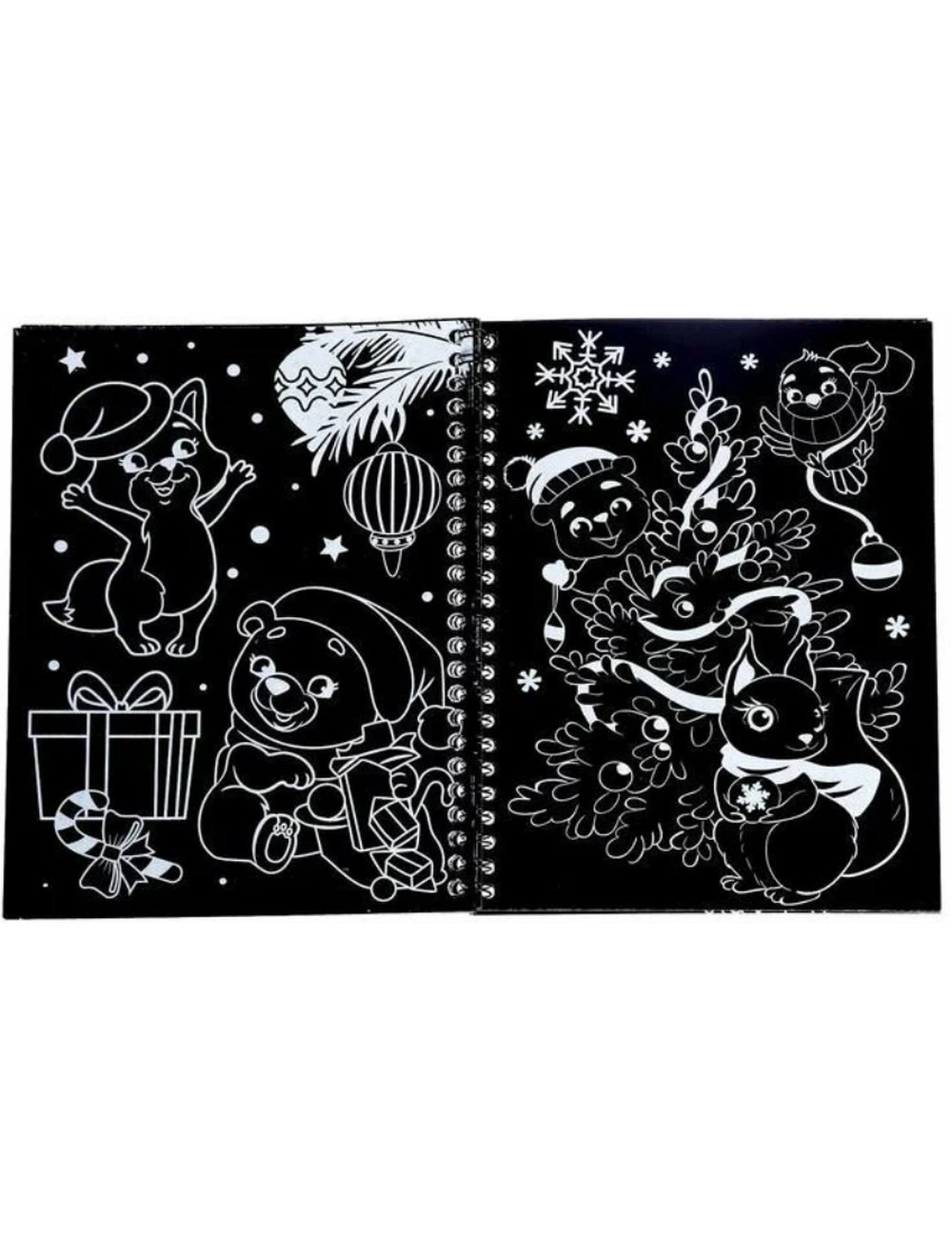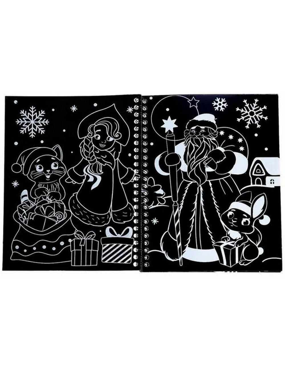 Книга для творчества позволит ребёнку почувствовать себя настоящим волшебником!Особенности книгиВнутри вы найдёте 10 гравюр на новогоднюю тематику.На листы уже нанесены контуры. Задача малыша — процарапать их штихелем (инструмент входит в комплект).Издание небольшого формата удобно брать с собой куда угодно.Чем полезны занятия гравюройТакое творчество тренирует эстетический вкус, развивает мелкую моторику, учит ребёнка быть усидчивым и внимательным.