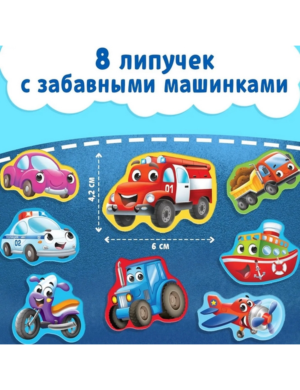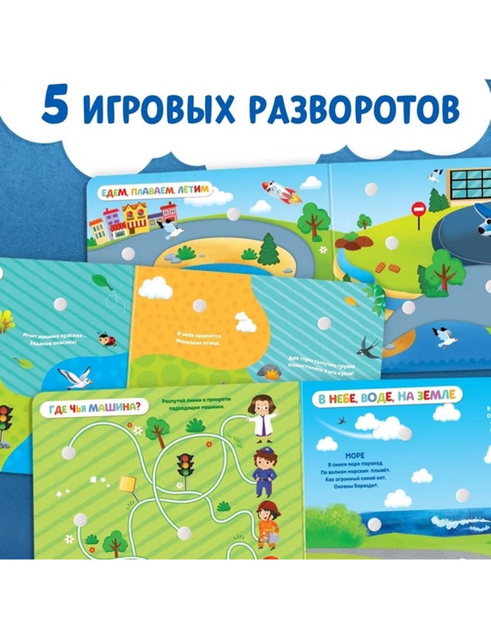 Малыш обожает машинки и всё, что связано с транспортом? Тогда эта яркая книга точно понравится крохе. Играя с липучками, ребёнок узнает, какие виды транспорта существуют, и весело проведёт время.