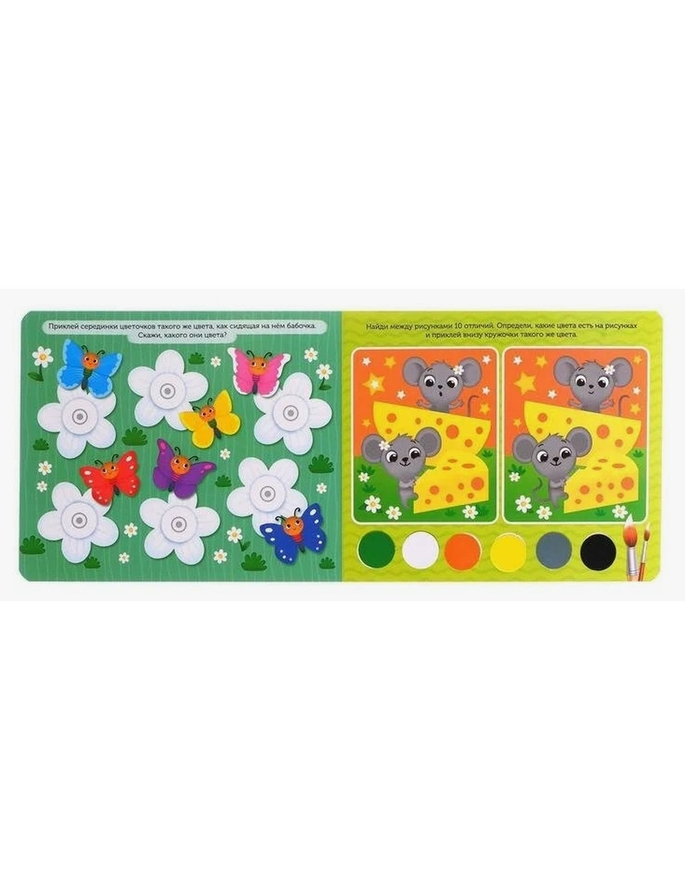 2.Мягкие липучки клеятся в книгу, а твёрдые — на кружочки.