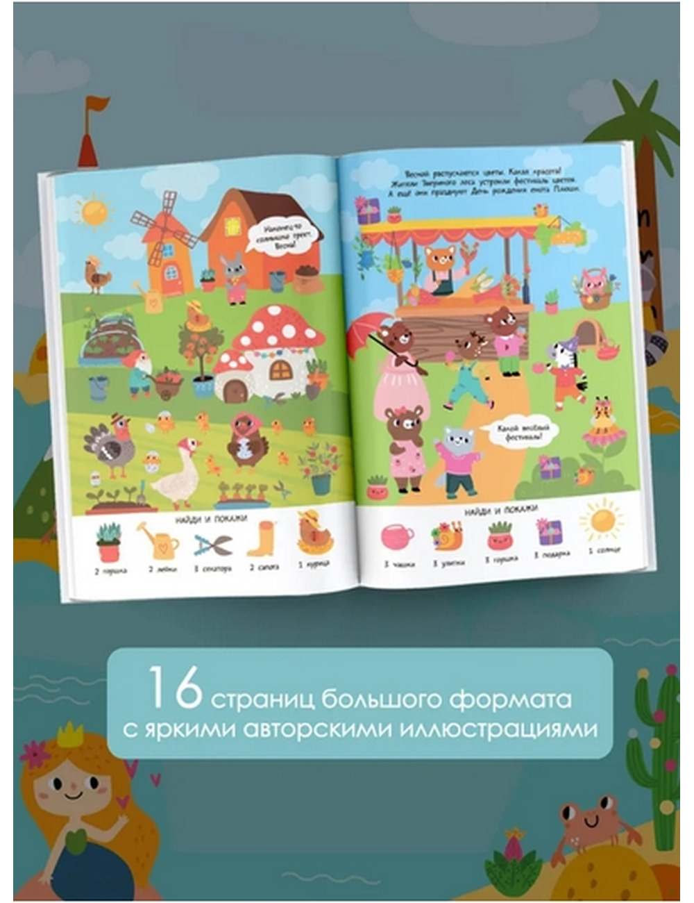 Большой формат делает виммельбух ещё более привлекательным — ребёнок сможет подолгу всматриваться в детали.