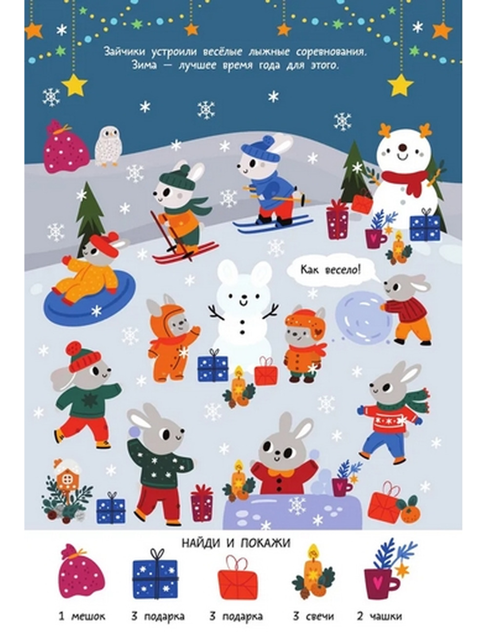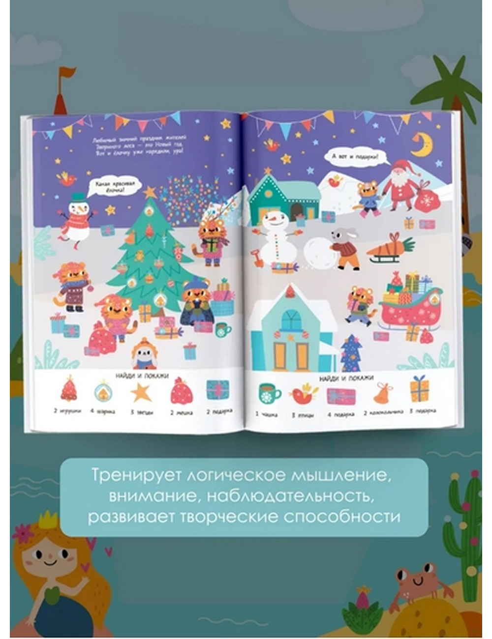Это цветная книга-головоломка, которая содержит такое множество деталей, что их можно разглядывать бесконечно! Такая детализация позволяет каждый раз по-новому взглянуть на картину: разная погода, много сезонных явлений, растения, деревья, снежные фигуры и многое другое!
