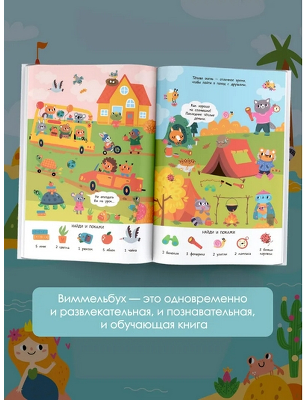 Занятия с такой книгой тренируют логику, наблюдательность, внимание, развивают фантазию и воображение, учат познавать окружающий мир. Но главное — ребёнку не будет скучно! Ведь яркий и красочный виммельбух превращают даже самые скучные занятия в весёлую игру.