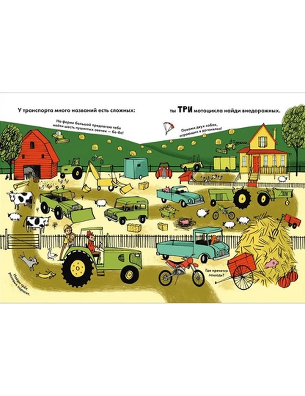 В ярком виммельбухе «Найди и покажи. Куда спешат машины?» вас ждут веселые стихи и много предметов для поиска на каждом развороте. Читайте и играйте, знакомьтесь с разными видами транспорта и повторяйте счет до 10.