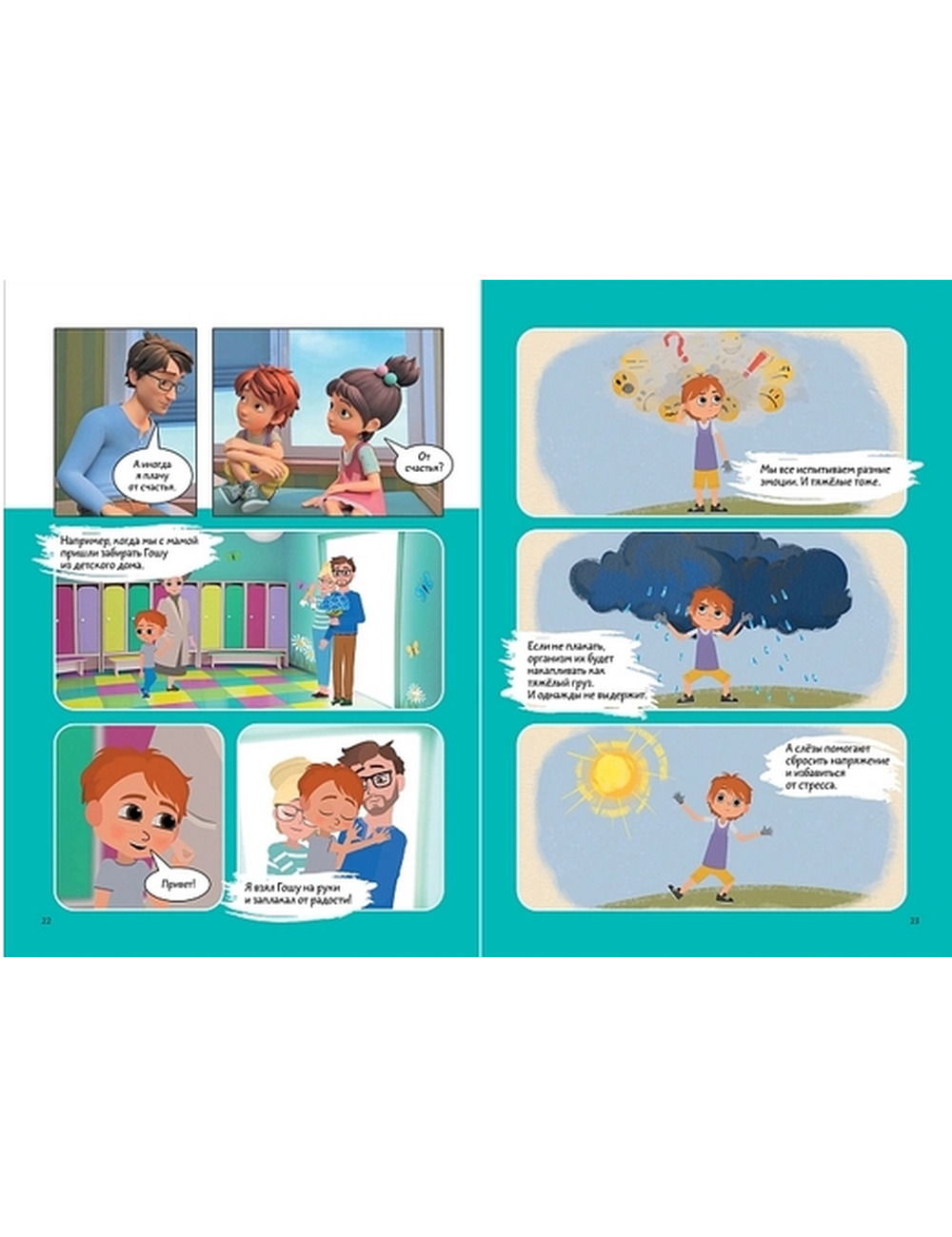 Любимый мультсериал — теперь в формате комиксов! Как и все дети, брат и сестра Гоша и Мира познают мир, играют, иногда ссорятся и попадают в трудные ситуации: дома, в школе или во дворе. Что делать, если тебя обижают? Как справиться со злостью? Почему плакать — совсем не стыдно? Как научиться общаться и завести новых друзей? На эти и другие важные вопросы Мире и Гоше помогают ответить мама и папа. А комментарии психолога к каждой истории помогут вам вместе с ребенком разобрать проблему, проговорить важные моменты и обсудить, как действовать в сложной ситуации.
