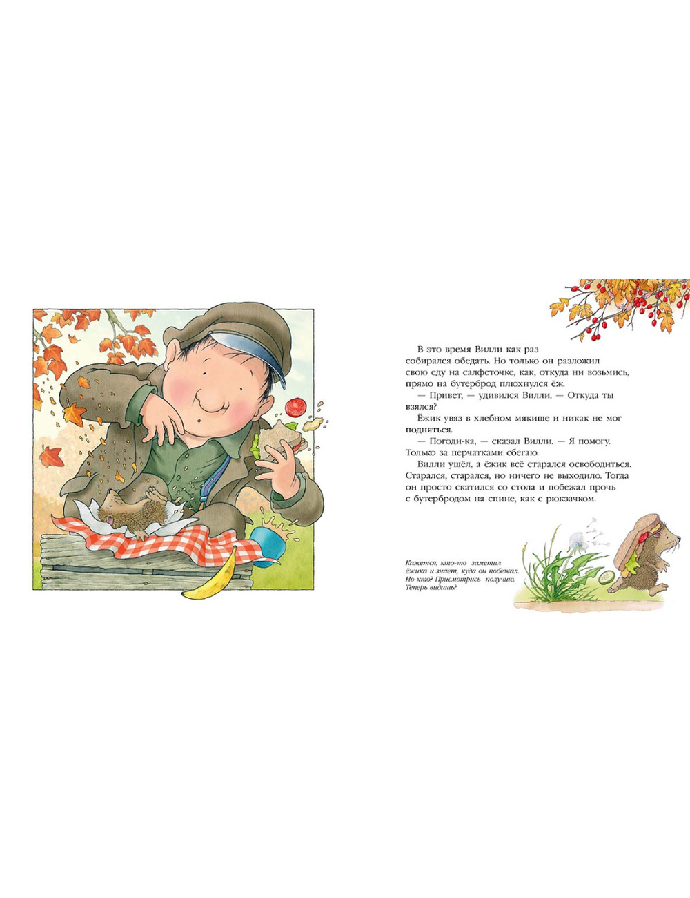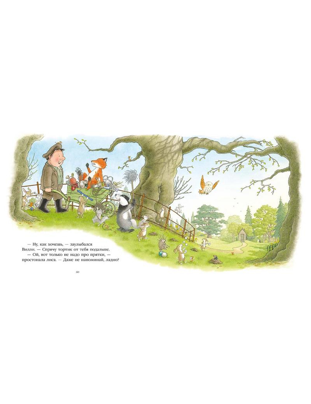 В книгу вошли три новых рассказа, которые ранее не публиковались на русском языке: «Охота за сокровищами», «Однажды весенним днём» и «Небесная гостья». Весёлые и добрые сказочные истории о стороже Вилли и его друзьях созданы в лучших традициях английской детской литературы. Они издаются во всём мире вот уже более 30 лет, и за это время стали настоящей классикой детской литературы, были переведены на 16 языков, а их суммарный тираж превысил 10 миллионов экземпляров! Главный герой этих историй — круглолицый, румяный добряк дядя Вилли — живёт и работает в большом старом парке. Он и за деревьями ухаживает, и цветы сажает, и дорожки подметает, и за порядком следит. И конечно, дружит со всеми своими соседями — зверушками и птицами: с лисой, барсуком, совой, ёжиком, белками, зайцами и мышками. В каждой истории кто-то из его маленьких друзей, а то и вся компания разом, умудряется попасть в затруднительное и немного забавное положение, выход из которого всегда находится благодаря Вилли. Сюжеты и юмор этих рассказов будут понятны даже самым маленьким читателям. На каждой странице — подробные иллюстрации, которые захочется пересмотреть не один раз. А ещё в каждой истории есть интересное задание «найди и покажи».