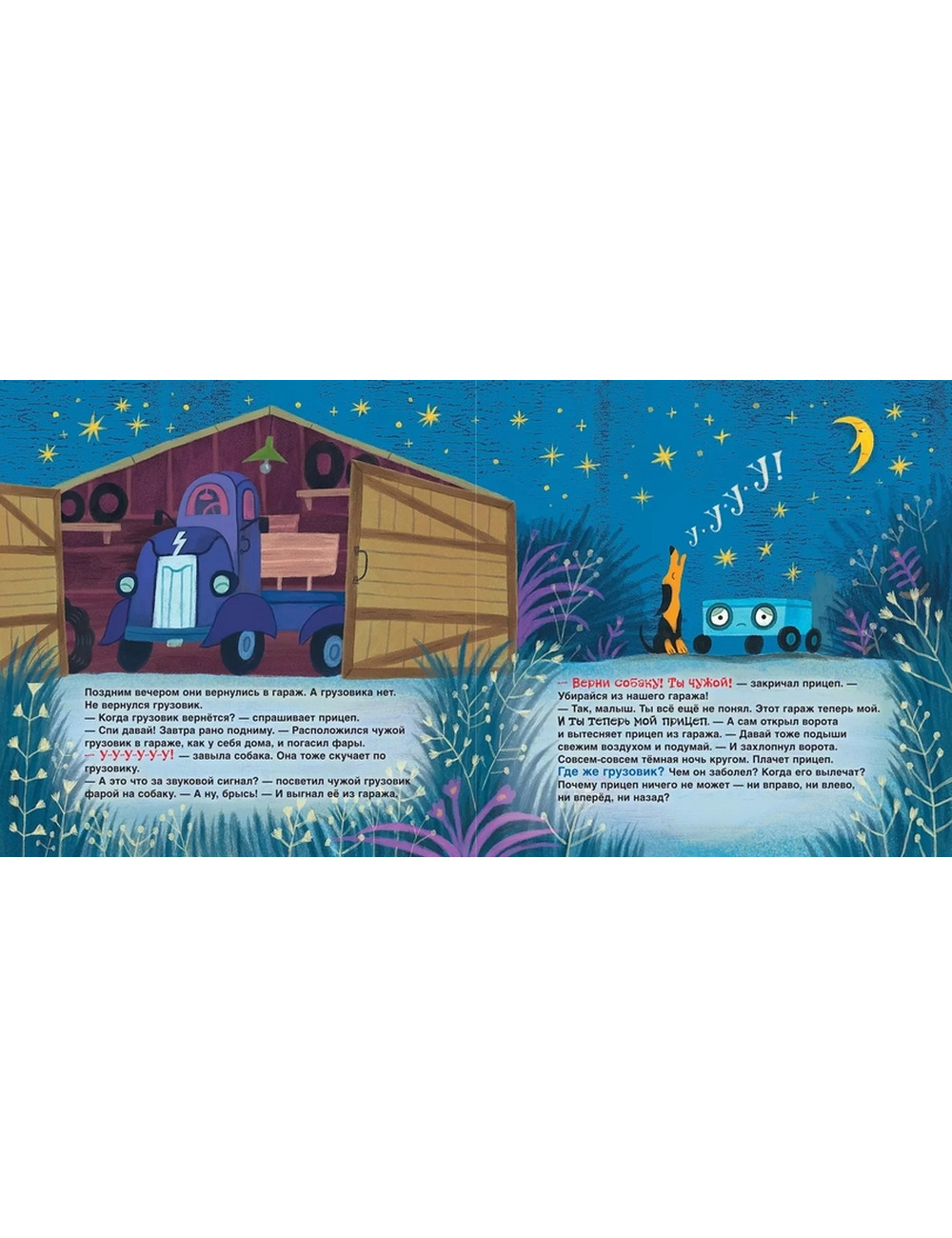 Выехал как–то утром грузовик из гаража – и заглох. Приехал эвакуатор и увез грузовик, а куда – неизвестно. Не может прицеп без своего грузовика, надо его найти! Малышу предстоит побывать на свалке старых машин и встретиться с таинственной автогадалкой Мамаздой. Как всегда, на помощь грузовику и прицепу приходят друзья.