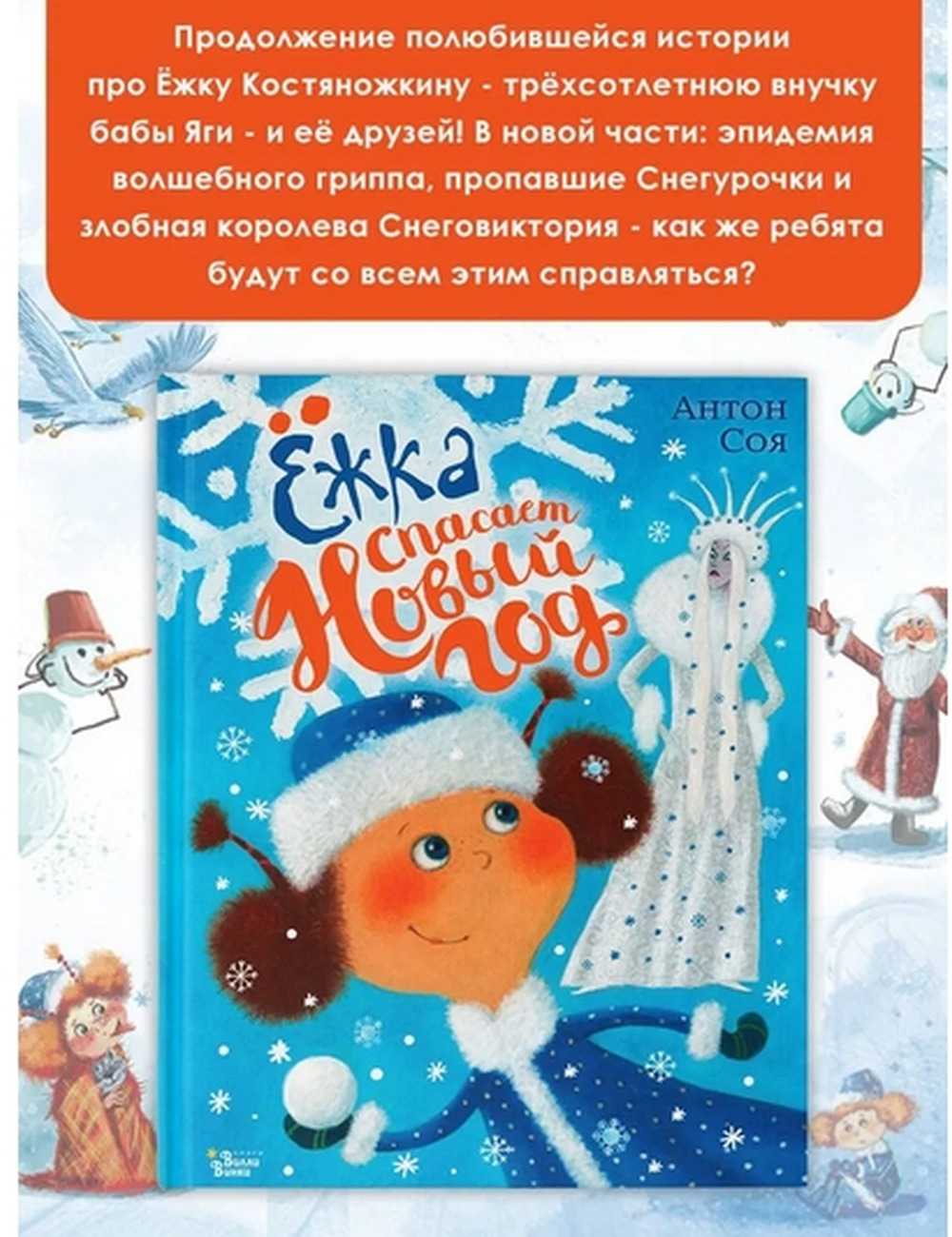 Мало того, что в школе «Сказка» прямо перед каникулами объявился какой-то новый вирус, из-за которого всех посадили на карантин. Так ещё и Ёжку похитили! А вместе с ней и всех снегурочек с праздников. Пока Марья Искусница днями-ночами не спит и работает над созданием спасительной вакцины, ребят из сказочной школы ждёт настоящее испытание. Ведь с колдуньей-похитительницей, Изольдой-Снеговикторией Великой и Холодной, будет справиться не так-то просто! Хорошо, что есть столько верных друзей, готовых и в огонь, и в стужу лететь-скакать ради спасения отважной и непокорной Ёженьки!