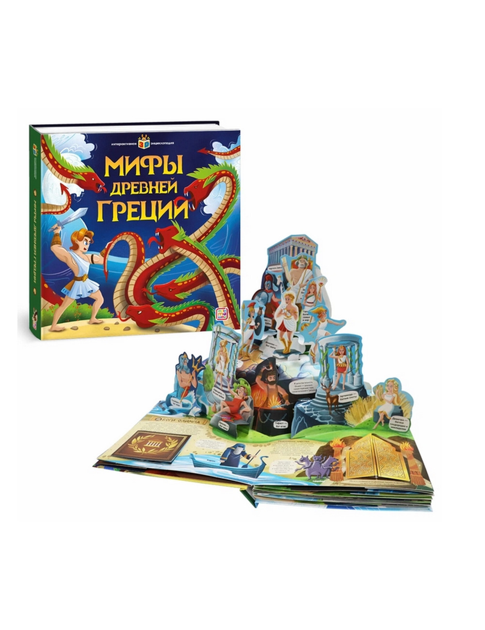 Интерактивная энциклопедия «Мифы Древней Греции» — это настоящий портал в завораживающий мир античной мифологии. Под обложкой вас ждут масштабные 3D-элементы: гора Олимп и троянский конь, многоголовая гидра и корабль Тесея. Красочные иллюстрации рассказывают о великих богах и богинях, разворачивают перед вашими глазами подвиги героев и знаменитые события. Эта книга не только увлекательная и познавательная, но и красочная и интерактивная. Подарите вашему ребёнку неповторимую атмосферу знаменитых приключений — книгу «Мифы Древней Греции» от торговой марки Malamalama!