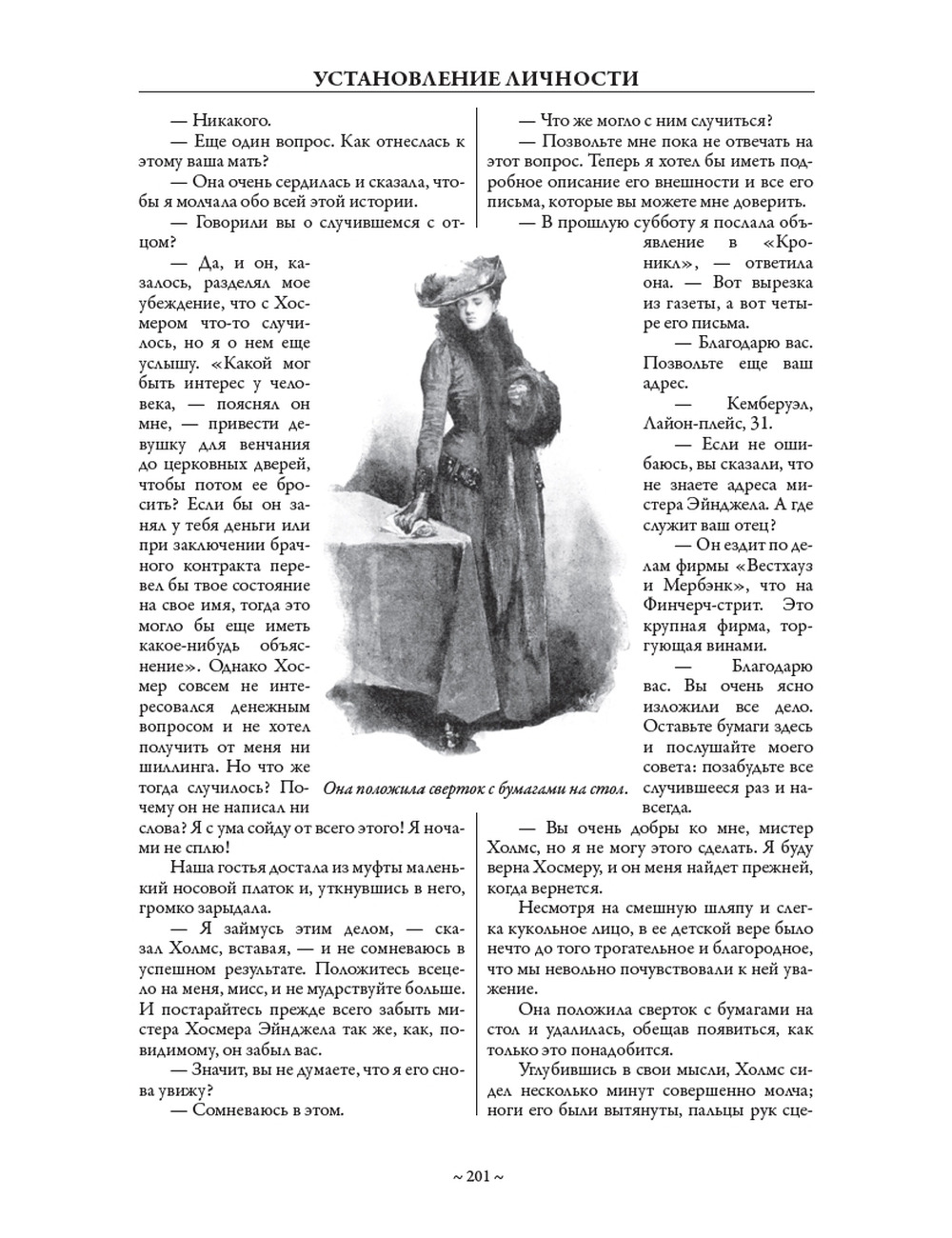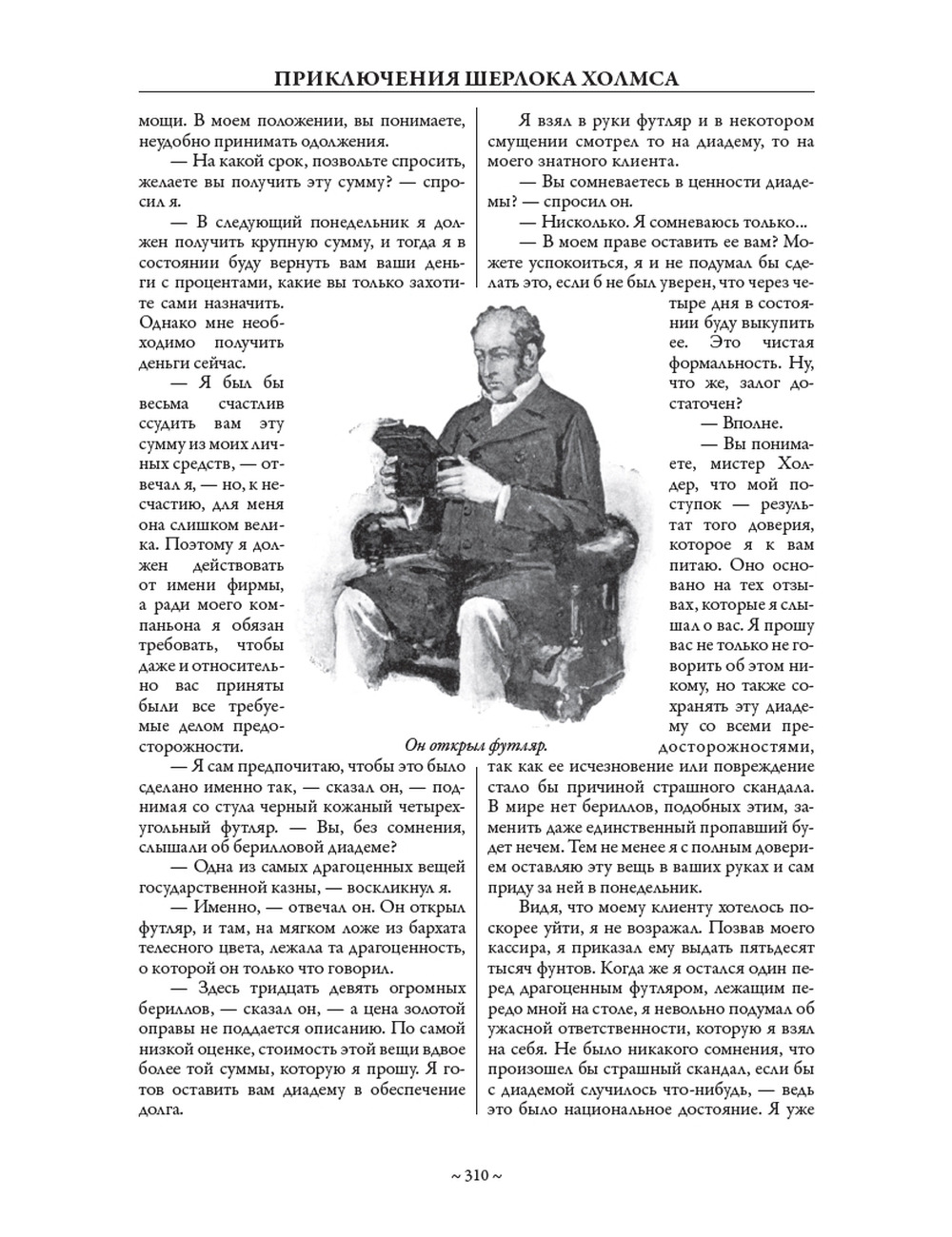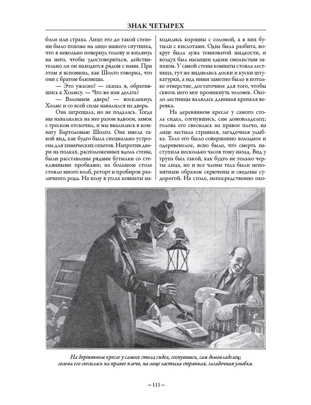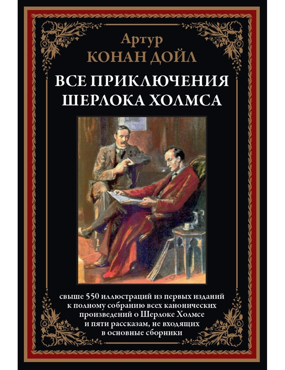 Всего же полное собрание всех канонических произведений о знаменитом сыщике состоит из четырех повестей: «Этюд в багровых тонах», «Знак четырех», «Собака Баскервилей», «Долина ужаса» и пятидесяти шести рассказов. Все они расположены в данном сборнике в хронологическом порядке их появления в печати. В книгу включены также пять рассказов, не входящих в основные сборники. Издание украшают иллюстрации сразу нескольких художников: Р. Бродерса, А. Гилберта, Р. Куртуа, С. Пэджета, Дж. Хатчинсона и Ф. Уайлса.