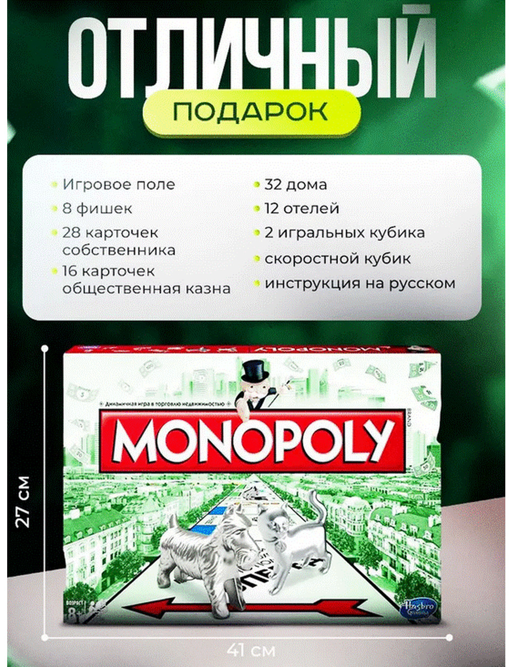 Цель игры — стать единственным успешным бизнесменом, который сможет скупить всю недвижимость и разорить своих оппонентов. «Монополия» — это не только увлекательная игра, но и возможность развить свои навыки в области финансов и экономики. Игра подходит для всех возрастов и станет отличным выбором для семейного вечера или дружеской встречи.