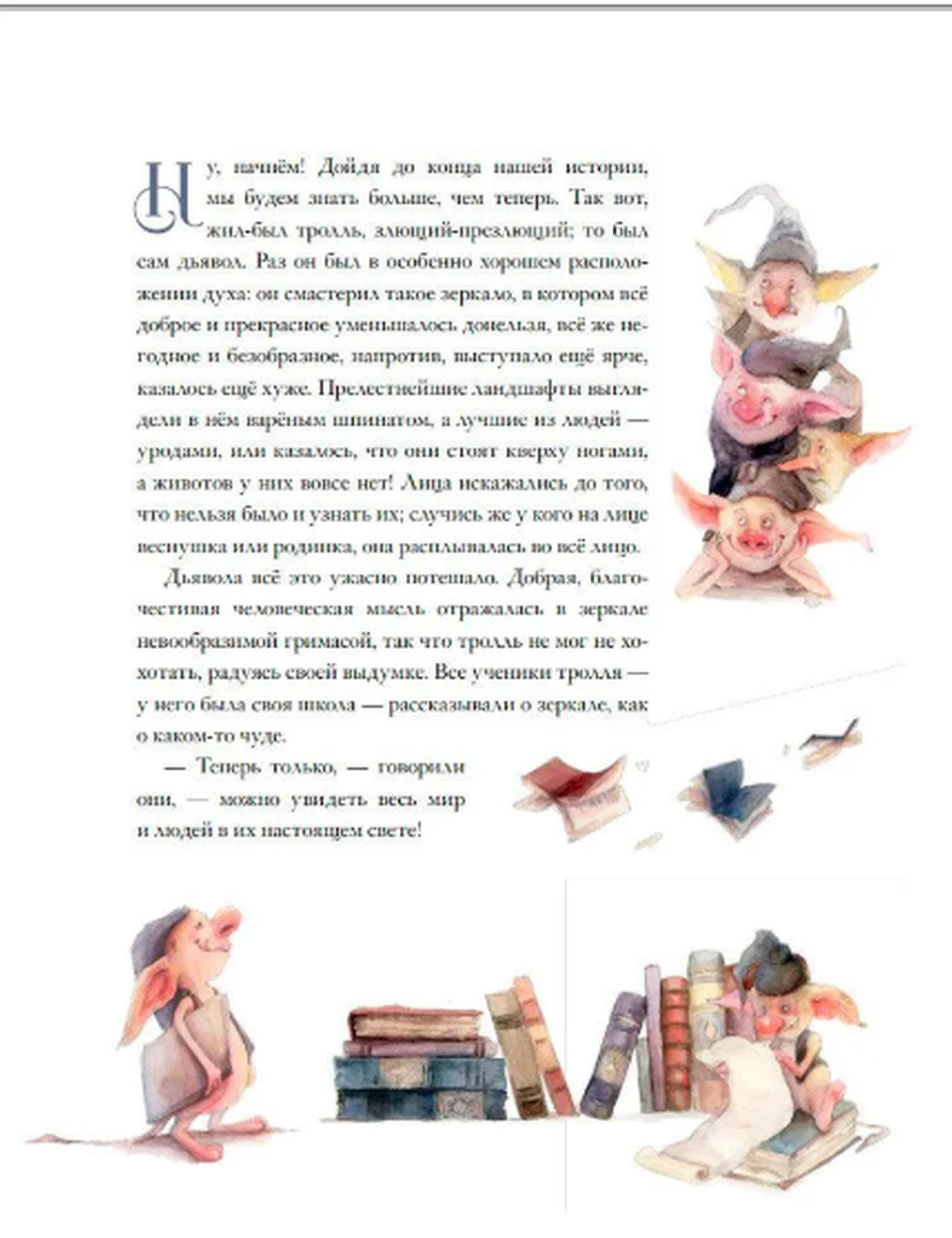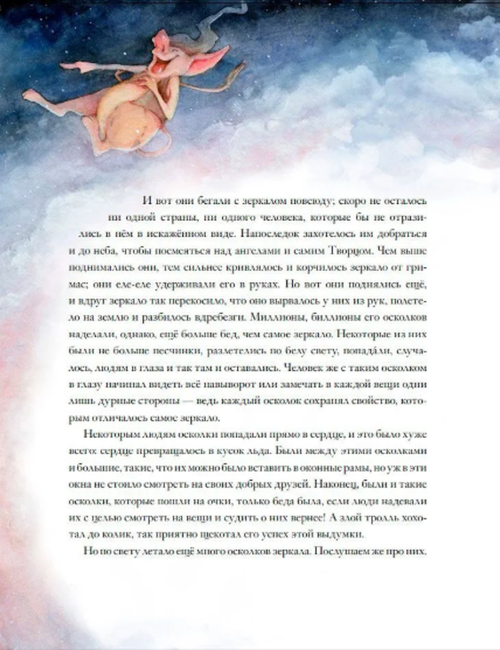 Бесстрашная Герда отправилась искать своего названого брата Кая, которого заколдовала и унесла на санях Снежная королева. Одна Герда во всем городе верила, что Кай жив. Ей придется босиком обойти полсвета, преодолеть множество опасностей и лютый холод, чтобы добраться до замка Снежной королевы. Благодаря завораживающим акварельным иллюстрациям история читается по-новому. А героям, знакомым с детства, сопереживаешь так, словно встречаешь их впервые.