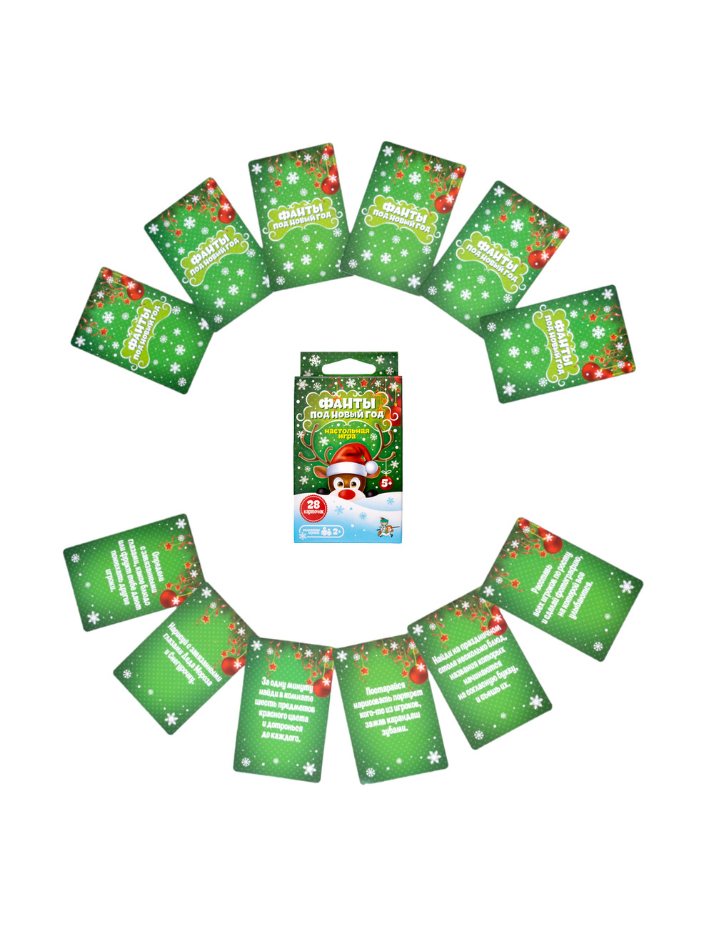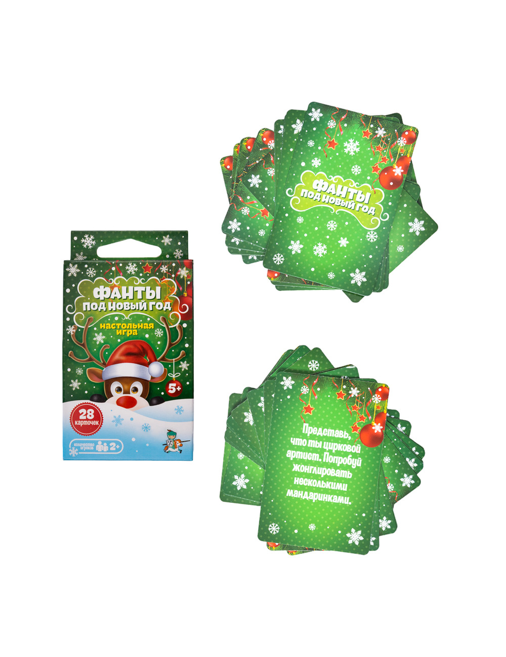 Динамичные задания Настольной игры для большой компании Фанты «Под новый год» сочетают в себе упражнения на логику, развивают кругозор и физическую активность. В нее можно играть на улице, в гостях, в детском саду или на переменках в школе. Удобный формат игры позволяет положить ее даже в карман.