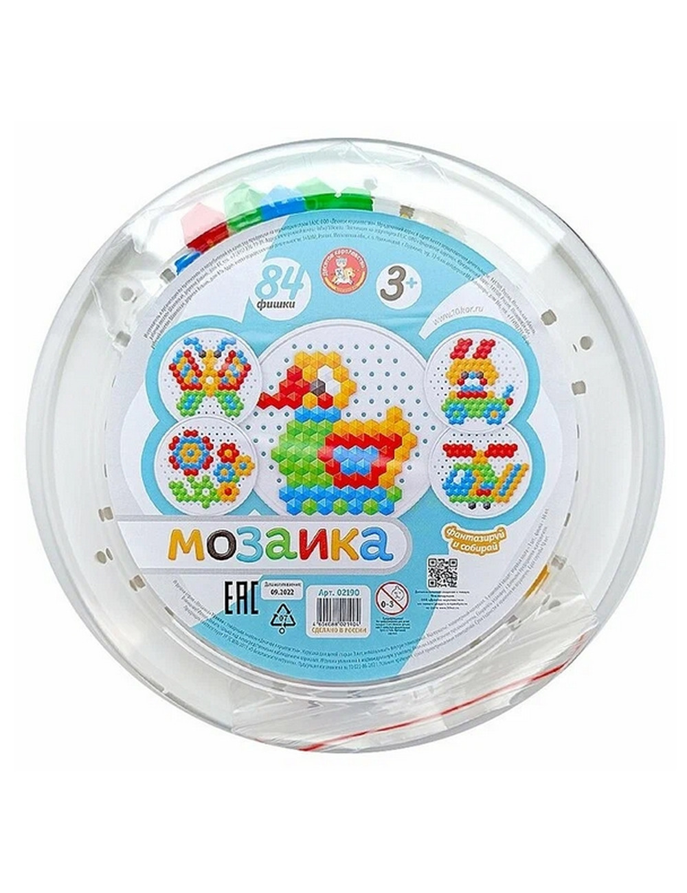 Мозаика круглая "Утенок" 84 эл. Состав игры: 84 элемента, 6 цветов (Красный, желтый, зеленый, голубой, белый, черный); игровое поле круглое, диаметром 19,5 см; размер шестигранной мозаики 14 мм; Полимерный материал. Рекомендуется для детей старше 3 лет.
