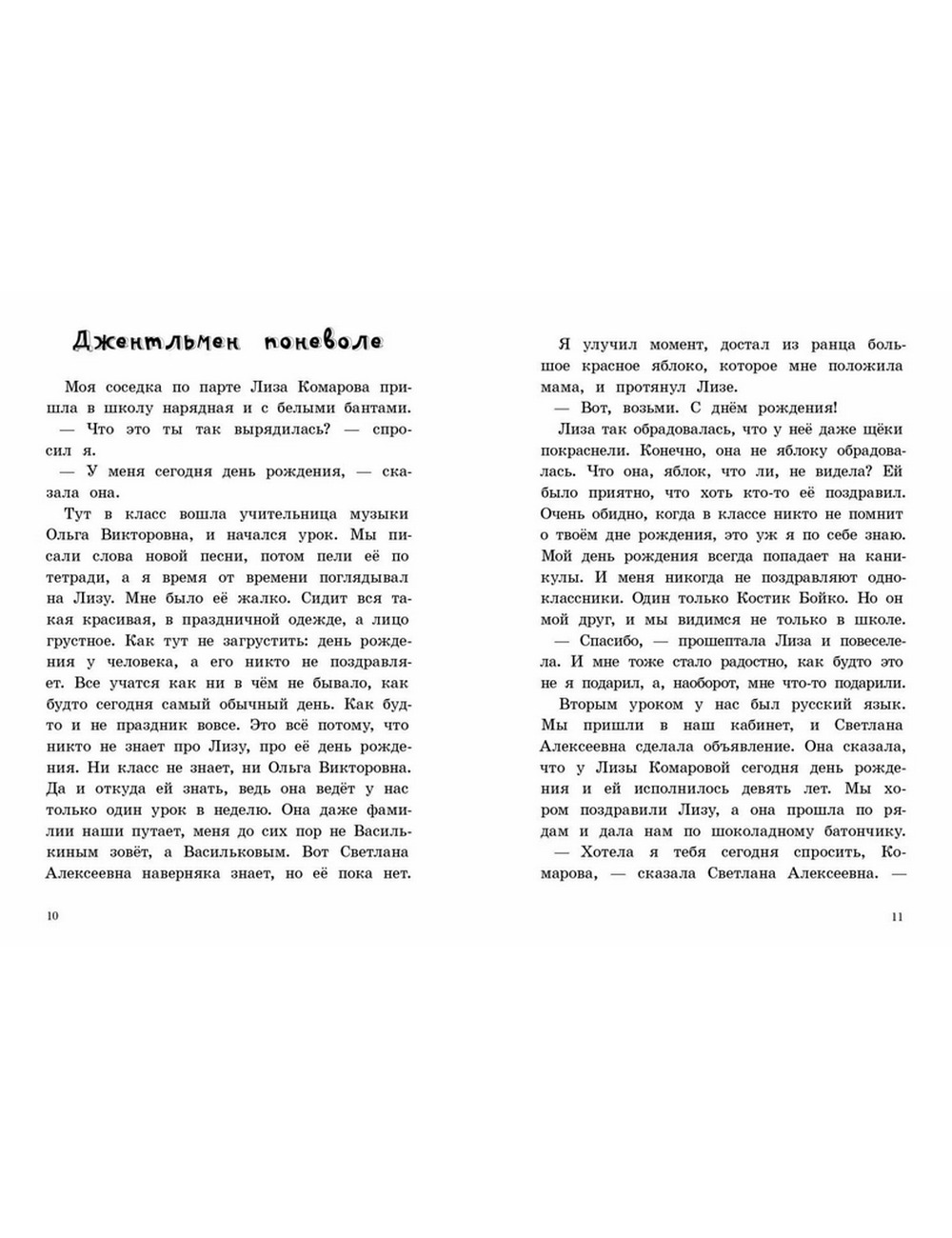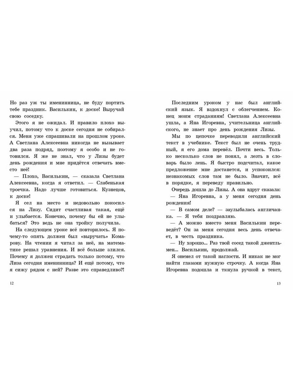 Новая книга Виктории Ледерман - это коллекция поучительных и забавных историй из жизни третьеклассника, которые выстраиваются в единый "роман в рассказах", постепенно раскрывая героя перед читателем. Впрочем, читатель этого героя хорошо знает: Василькин ведь так похож на всякого девятилетнего школьника! Виктория Ледерман пишет легко и увлекательно. Писательнице удаётся создать правдивый и запоминающийся образ - как удавалось и в прошлых книгах, ставших настоящими хитами ("Календарь ма[й]я", "Первокурсница", "Всего одиннадцать! или Шуры-муры в пятом "Д", "Уроков не будет!").