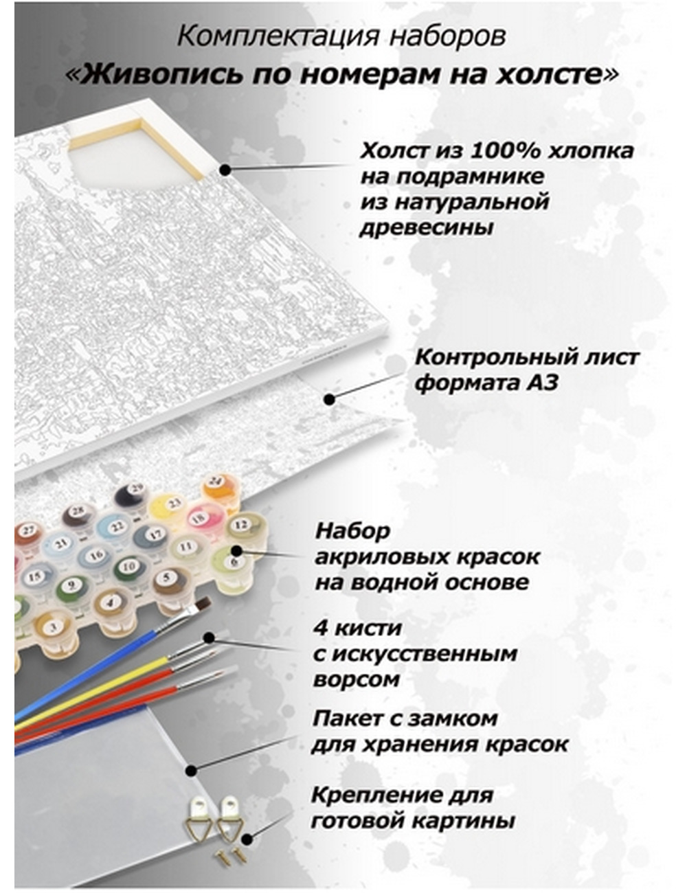 Раскрашивание по номерам развивает художественный вкус, аккуратность и усидчивость. Набор предназначен для детей и взрослых, у этого интересного процесса нет ограничений по возрасту. Занимательная работа по созданию художественных шедевров методом раскрашивания по номерам это творческий отдых от напряженных трудовых будней.