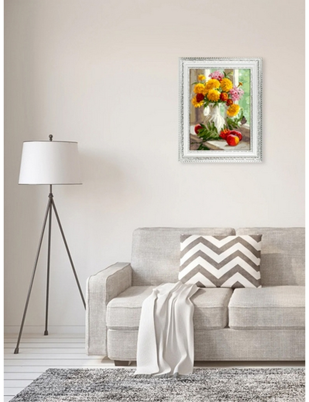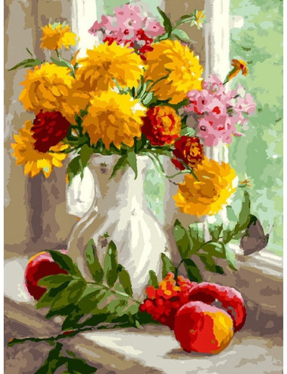 Основа картины – хлопковый холст, натянутый на деревянный подрамник. На холст нанесена схема, разделенная на области для закрашивания. Цифра внутри каждой области указывает на номер краски, которой необходимо закрасить данный участок. В комплект входят акриловые краски на водной основе, экологически безопасные, без запаха, быстросохнущие. Картина раскрашивается без смешивания красок. Набор комплектуется специальными кистями разного размера с искусственным ворсом для акриловых красок.