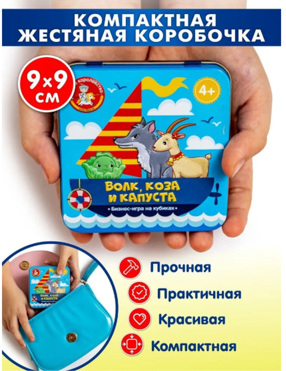 Когда собираетесь всей семьей в дорогу и надо с пользой провести время в пути, какая игра на память приходит? Конечно «Волк, коза и капуста». Компактная жестяная коробочка поместится даже в кармане, развивашки в путешествии всегда пригодятся, да и хранение удобное. Вот так с комфортом учим цифры для малышей и развлекаем взрослых. Вот так семейная игра может стать экономической игрой.