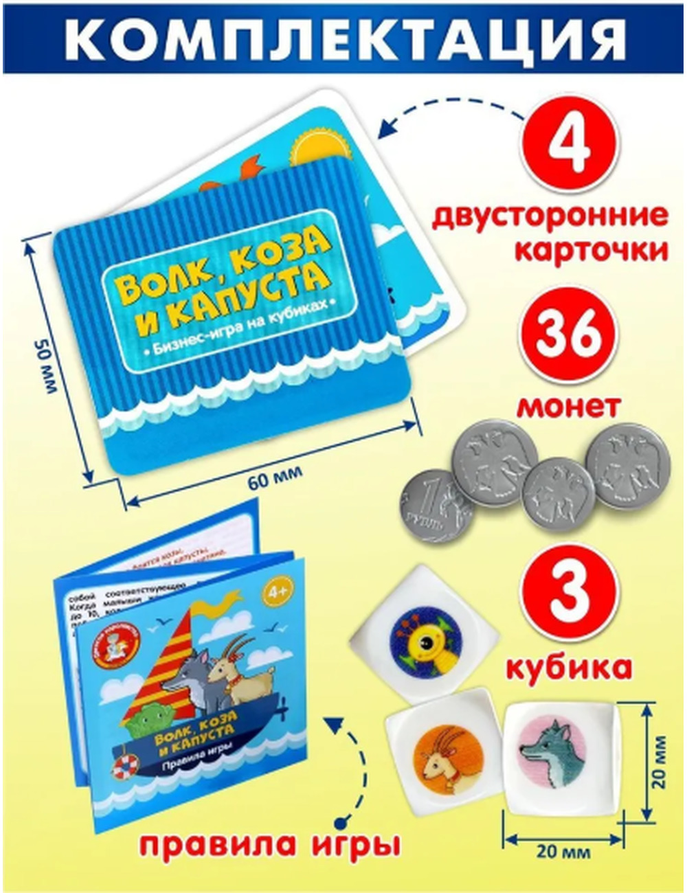 • карточки – 4 шт. (6 х 5 см)