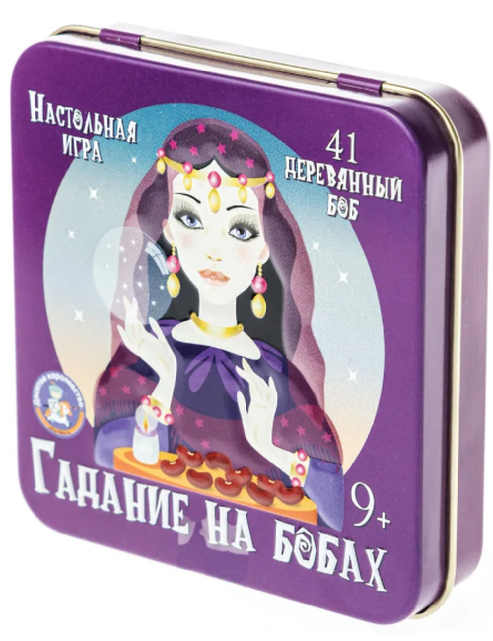 Загляните в своё будущее или узнайте о чужом прошлом. Проведите весело время со своими друзьями! Состав набора: ● деревянные фишки-бобы — 41 шт. (1 х 2 см) ● мешочек (12 х 18 см) ● правила игры Игра хранится в жестяной коробочке (9 х 9 см), предназначена для детей от 9 лет и рассчитана на 1–2 игроков. Как играть? Загадывайте желания и задавайте вопросы. Бобы дадут вам ответы. Разделите бобы случайным образом на три кучки. Постучите по первой кучке указательным пальцем правой руки с вопросом “Ждёт ли меня удача в задуманном?”. Согните этот же палец и постучите косточкой по средней кучке с вопросом “Ждет ли меня благополучие?”. По последней кучке постучите кулаком правой руки с вопросом “Ждет ли меня счастье?”. Далее считают бобы в каждой кучке. Что означает чётное, а что нечётное количество бобов, вы найдете в инструкции. С этой игрой вы отвлечётесь от своих забот и переживаний, весело проведёте время. Оставьте все свои мысли и погрузитесь в увлекательный и таинственный мир гадания на бобах. Ведь так иногда хочется узнать о грядущем или о былом, помечтать и быть уверенным в том, что желания будут исполнены.