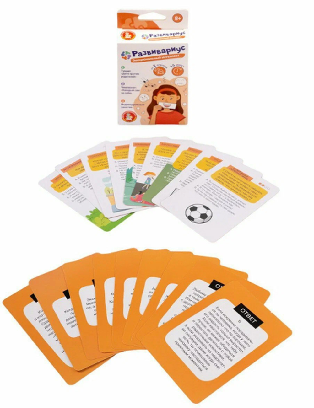 Настольная карточная игра «Развивариус. Эмоциональный интеллект» обязательно понравится детям и увлечет надолго. Играть в данную игру можно вдвоем с ребенком, а также устраивать увлекательные турниры.