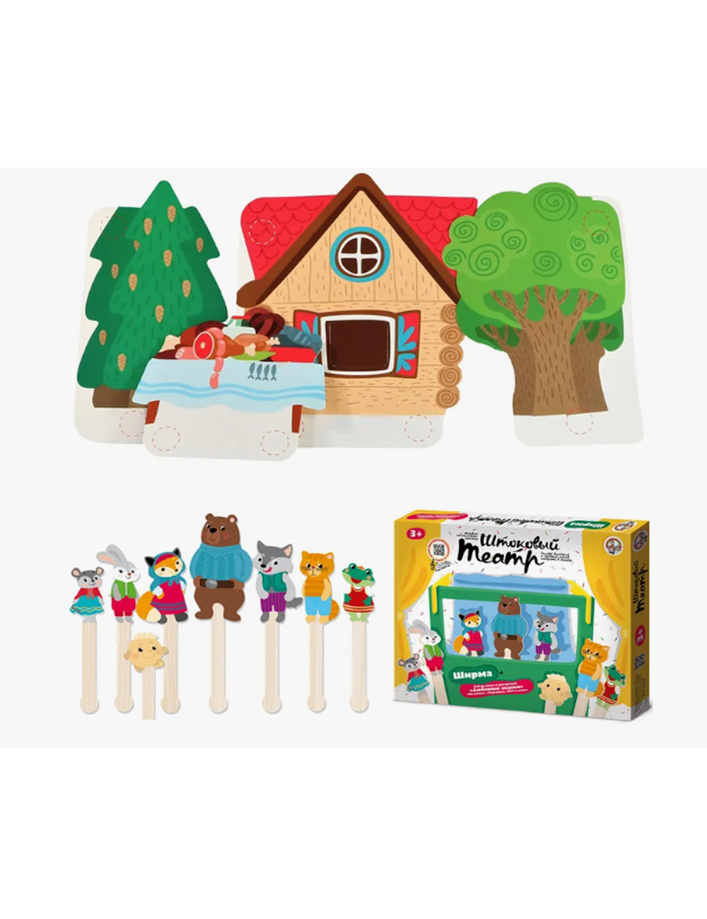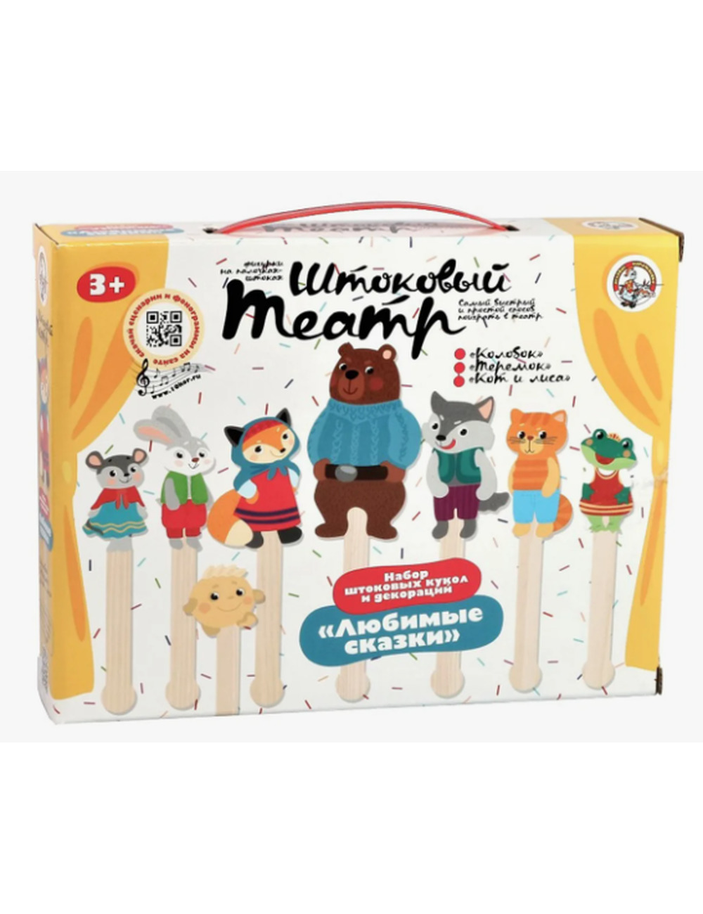 Набор подходит для постановки спектаклей «Колобок» , «Теремок» и «Кот и лиса» .