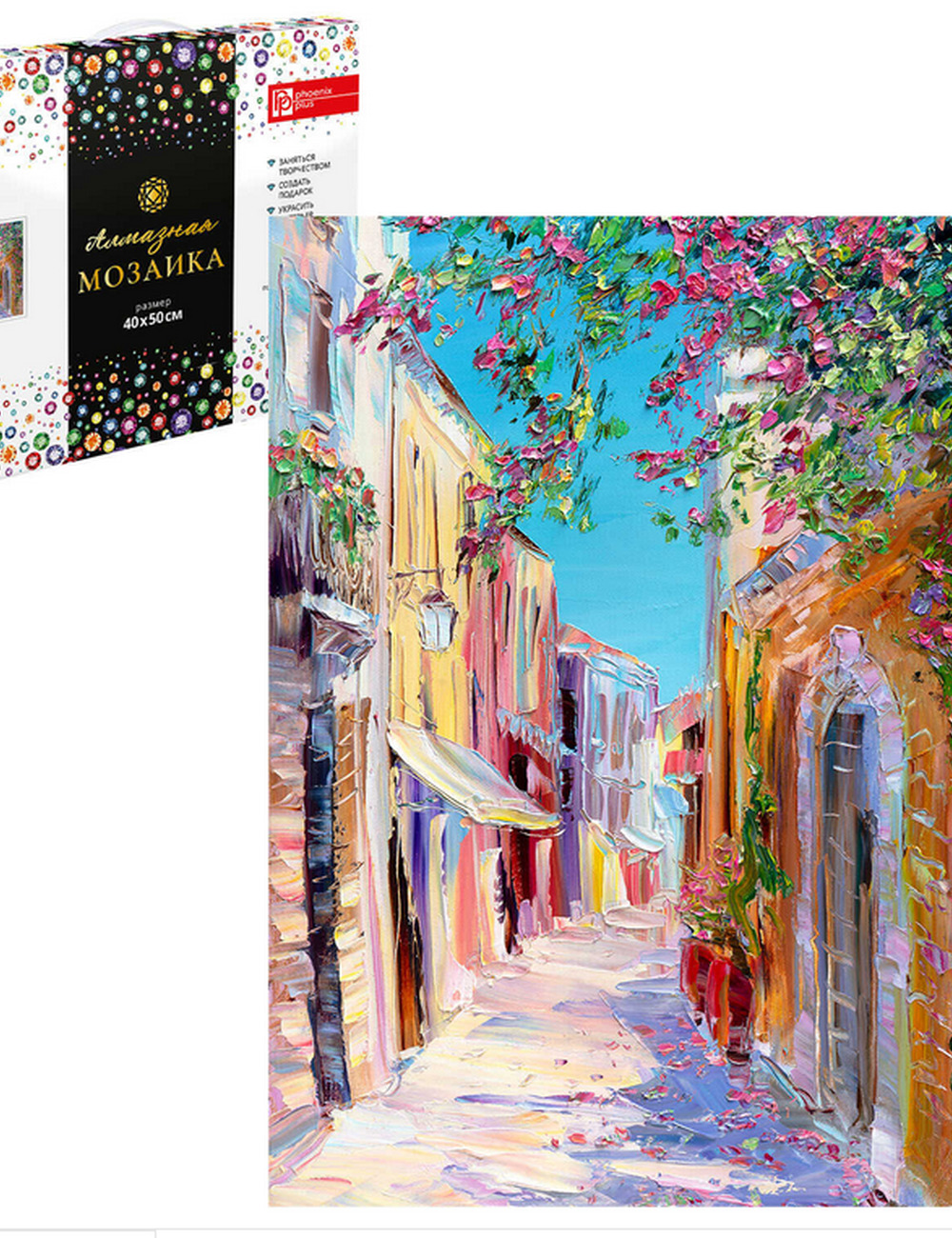 Алмазная мозаика (набор для творчества) арт. 65592 / 16 СОЛНЕЧНАЯ УЛОЧКА, размер: 40*50 см, (24 цветов страз, холст на подрамнике с напечатанной картиной, покрытый клеевым слоем и защитной пленкой, пакеты со стразами, стилус, лоток для страз, силикон для страз, клей, подвесы для подрамника, пинцет металлический, схема, дополнительные пакеты с zip-молнией, стикеры для нумерации zip-пакетов в комплекте, форма страз: круглая, тип выкладки: полная, картонная коробка с ручкой)