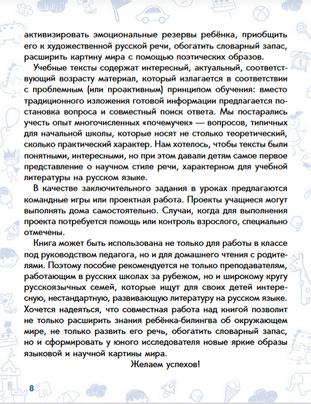 Книга является второй частью серии пособий по окружающему миру для детей-билингвов, изучающих русский язык в рамках дополнительного образования за рубежом. Пособие предназначено для учащихся 8–9 лет.