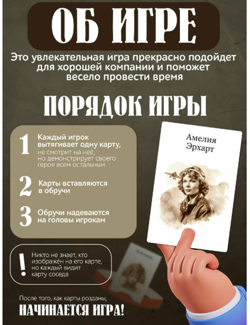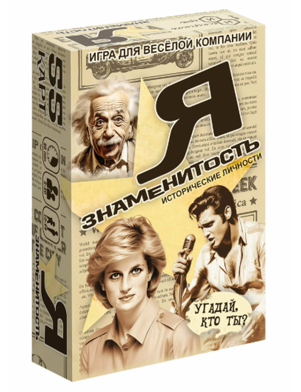 Я знаменитость Оригинальная версия - это увлекательная и интересная карточная игра для всех возрастов, в которой участники примеряют на себя роль различных персонажей и пытаются угадать, кто они, задавая наводящие вопросы.