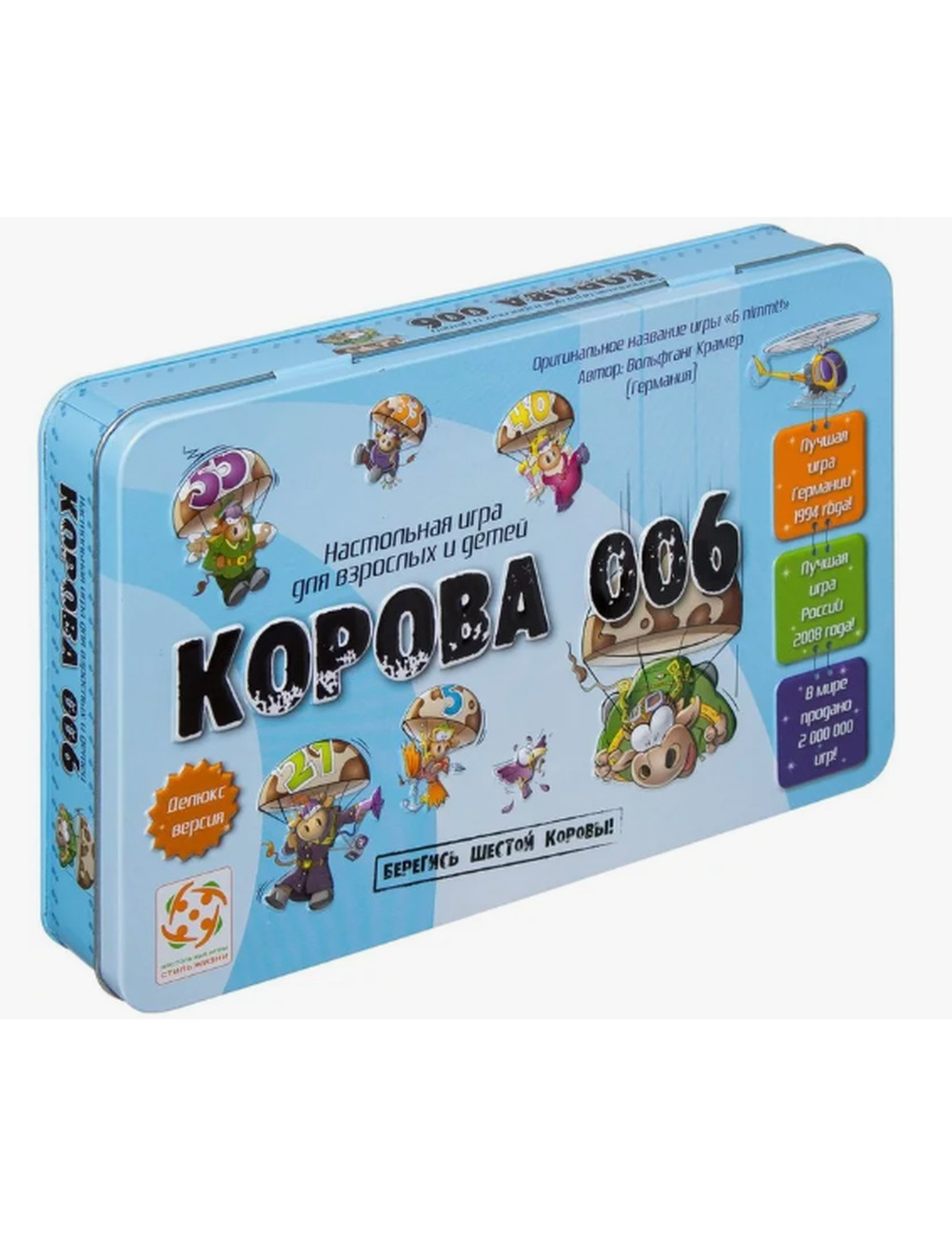 Корова 006 - быстрая и азартная настольная игра, в которой сочетаются расчёт и удача. Несложные и элегантные правила делают игру одновременно лёгкой и увлекательной, а забавные иллюстрации придают ей особое очарование. Корова 006 - игра для любой компании!