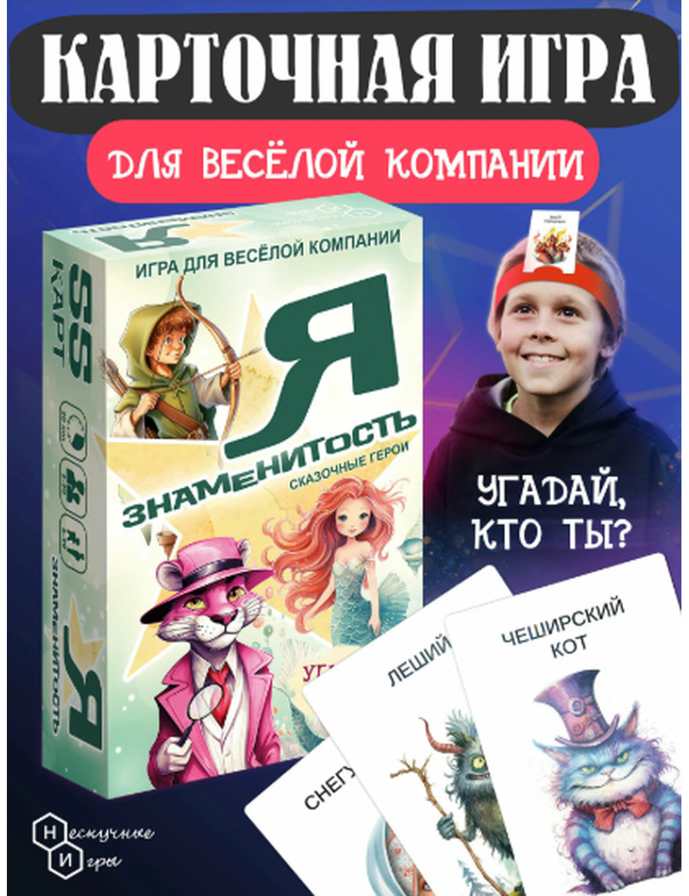 Я знаменитость Сказочные герои - это увлекательная карточная игра для детей и взрослых, которая позволит окунуться в мир любимых сказок и волшебных персонажей.