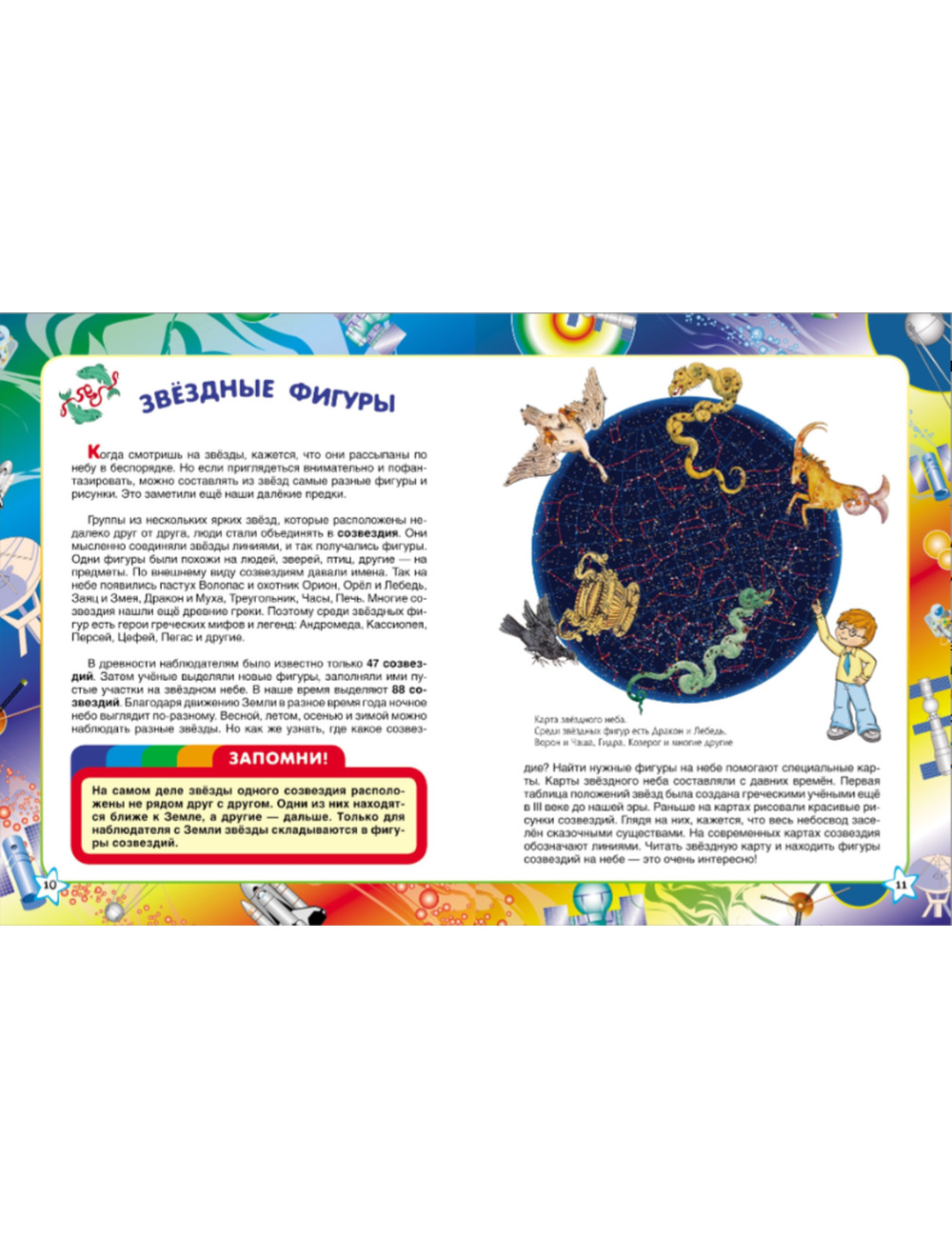 Эта весьма информативная и увлекательная книга недаром названа "Первой энциклопедией школьника". С чего ученики в любой стране мира начинают изучать окружающий мир? Правильно — с азов. А это означает, что данное издание поможет юному читателю пройти путь познания от простого к сложному. В первом разделе на интересных примерах рассказывается о строении вещества, атомах и молекулах, основных химических элементах, а также о таких физических понятиях, без которых существование нашего мира невозможно: о свойствах энергии, света и цвета, теплоты, звука, магнетизма и многом другом. В разделах, описывающих растения и животных, школьник узнает о зарождении и развитии жизни на нашей планете, о древнейших и современных обитателях Земли, их уникальных особенностях. Венцом эволюционного развития является человек, и завершающие разделы книги повествуют о том, как он появился, с подробным описанием анатомии и физиологии этого уникальнейшего во Вселенной мыслящего существа. А окончательно сформировали облик Земли замечательные открытия человеческой цивилизации: от укрощения огня и изобретения колеса до автомобилей и самолетов, мобильных телефонов и компьютеров — все самые знаковые достижения современной науки также представлены на страницах издания. Информация доступно излагается при помощи увлекательных описаний, приводится много интересных и любопытных научных фактов, а наглядные иллюстрации в подробностях раскрывают тайны мироздания. Кроме того, ребятам предлагается собственноручно провести несколько нехитрых, но весьма познавательных физических опытов, чтобы на практике убедиться в действенности незыблемых законов науки. А для закрепления полученных знаний и самопроверки к каждому разделу подготовлены вопросы: узнав ответы на них, школьники не только расширят свой кругозор, но и будут уверенно чувствовать себя на уроках, ведь практически все рассмотренные темы изучаются в рамках школьной программы.