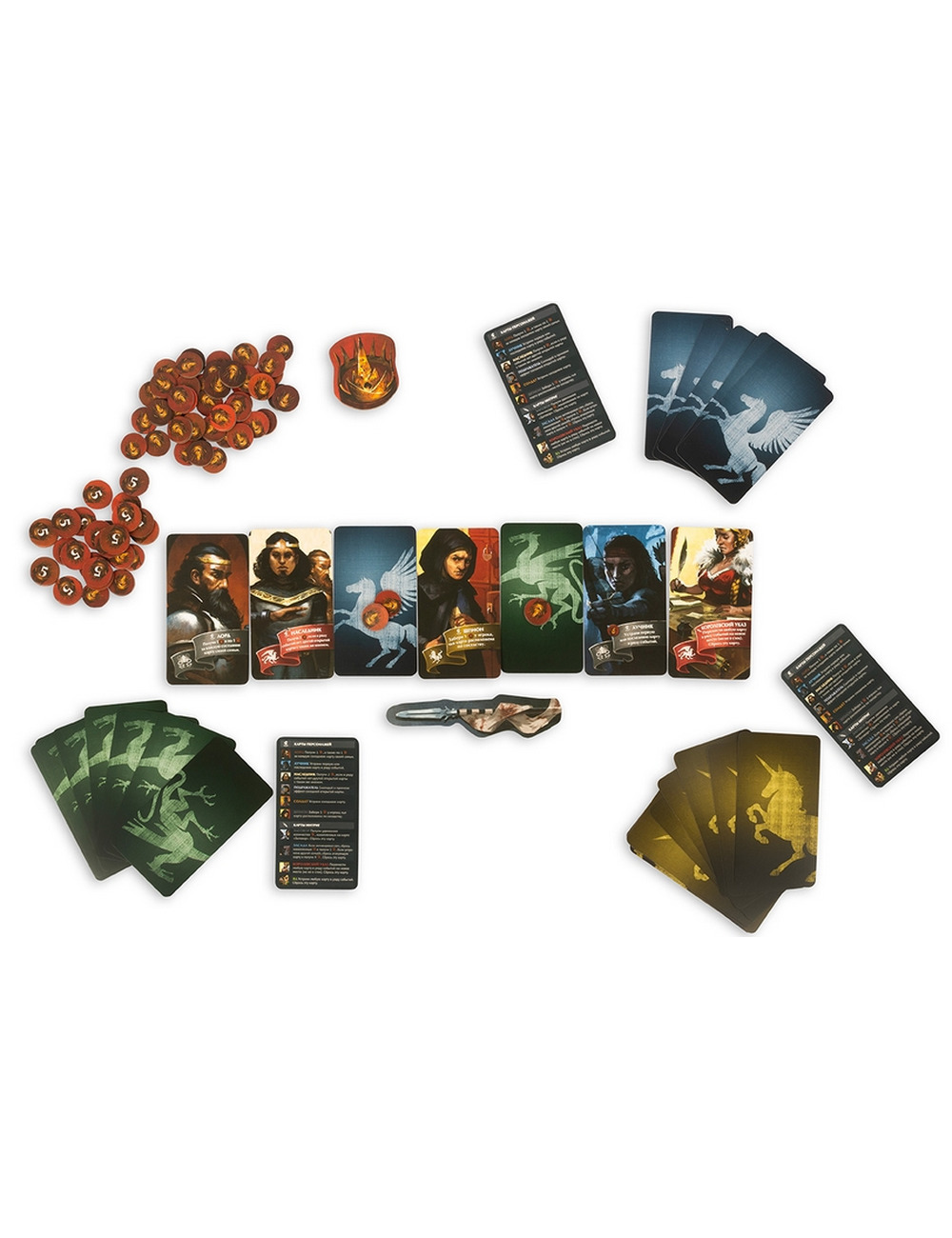 Настольная игра «Орифламма» — захватывающая карточная игра, в которой участники по очереди разыгрывают карты, стараясь максимально использовать их свойства.
