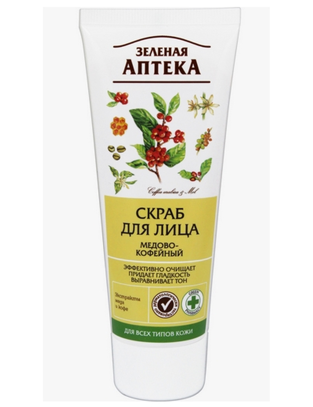 Скраб для лица Зеленая аптека "Медово-кофейный" нежно очищает кожу, придает ей гладкость и готовит к следующим процедурам по уходу. Кремовая консистенция обеспечивает мягкое