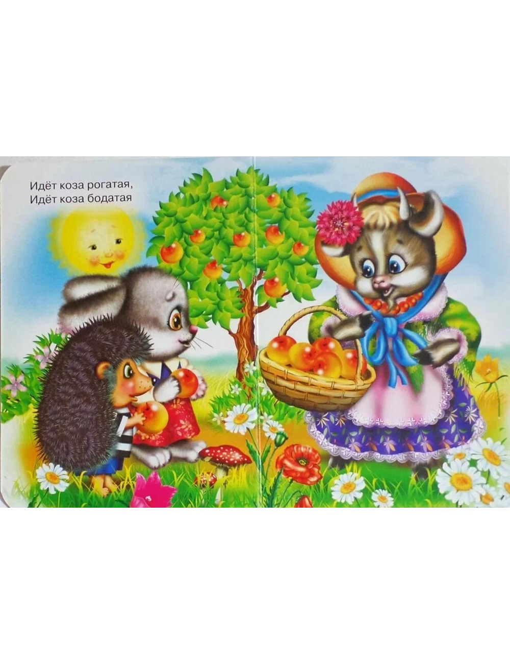 В книге представлена русская народная потешка "Идет коза рогатая" с красочными иллюстрациями.