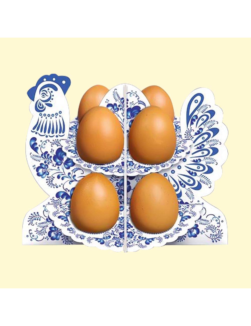 Декоративная подставка для 8 яиц - Петушок-Гжель из картона