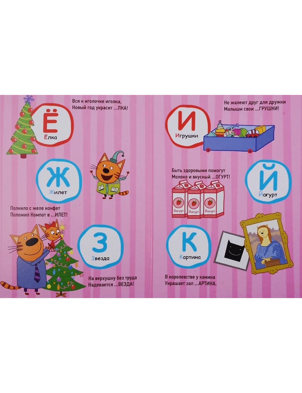 Обучающие книги в стихах с любимыми героями мультфильма "Три кота" познакомят малышей с алфавитом, расскажут о временах года, профессиях и хороших манерах. Развиваться с весёлыми котятами Коржиком, Карамелькой и Компотом-это Здорово! Миу-миу-миу!