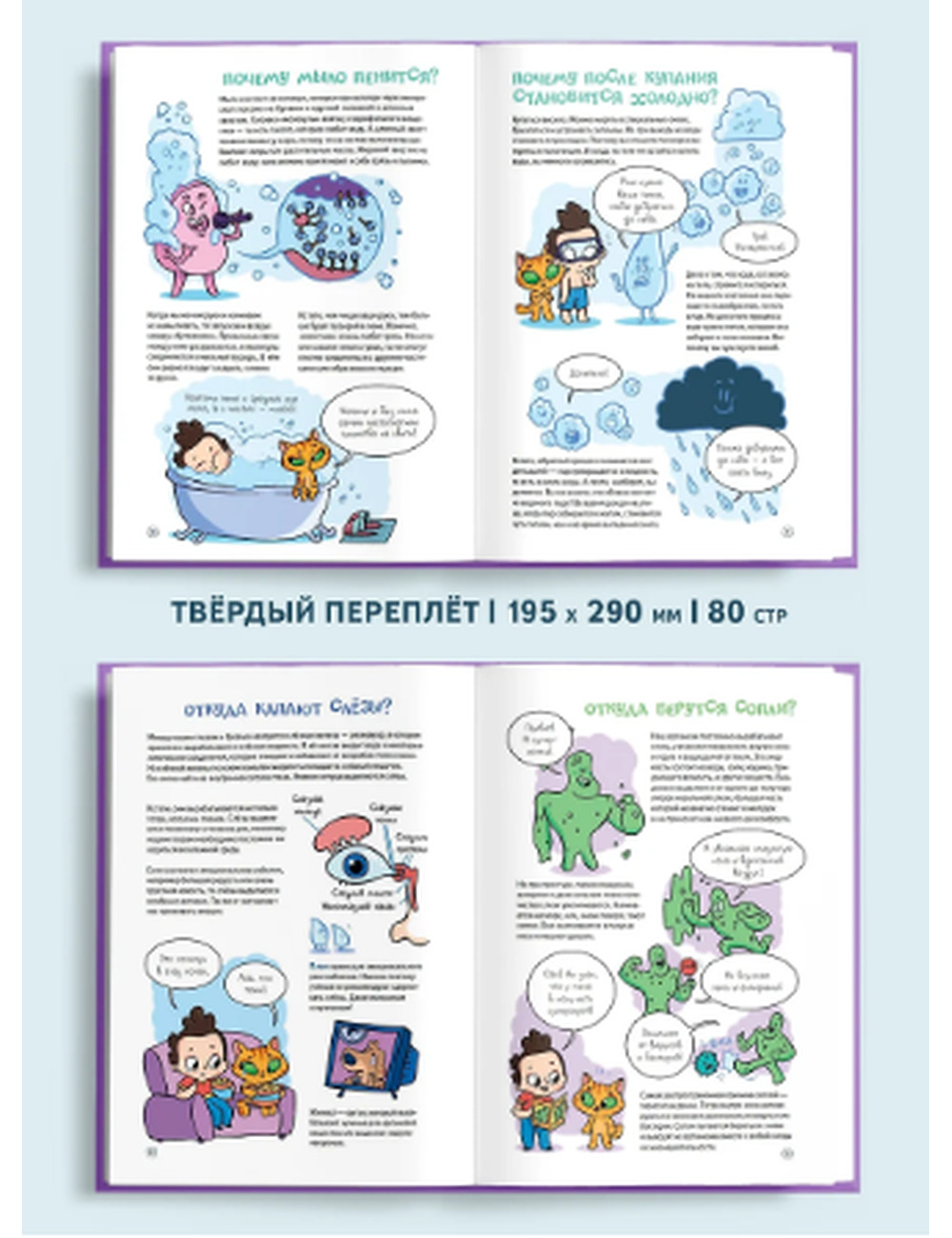Внутри книги вы найдете вопросы и ответы из разных областей знаний: работа человеческого тела, здоровье, эмоции, эволюция, физика, биология и др.